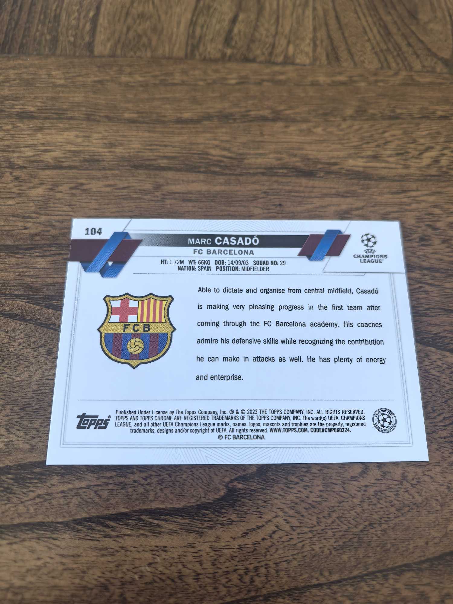 2023 Topps Chrome Marc Casadó RC 巴萨🇪🇸拉玛西亚出身#卡萨多RC新秀蓝碎冰折,卡品如图