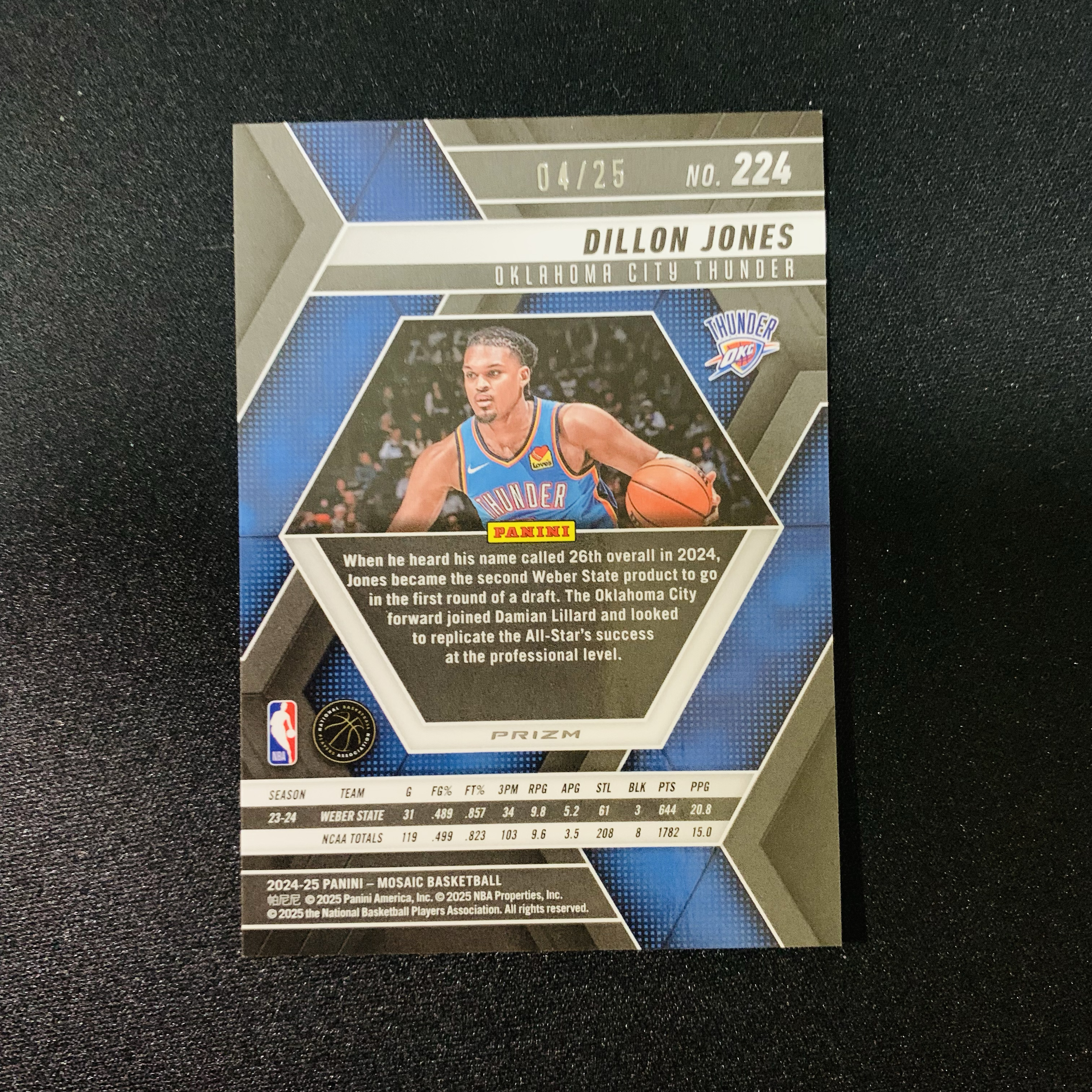 24-25 panini mosaic 马赛克 狄龙琼斯 04/25编 低编 RC新秀 雷霆 折射 收藏必备 卡品如图 范