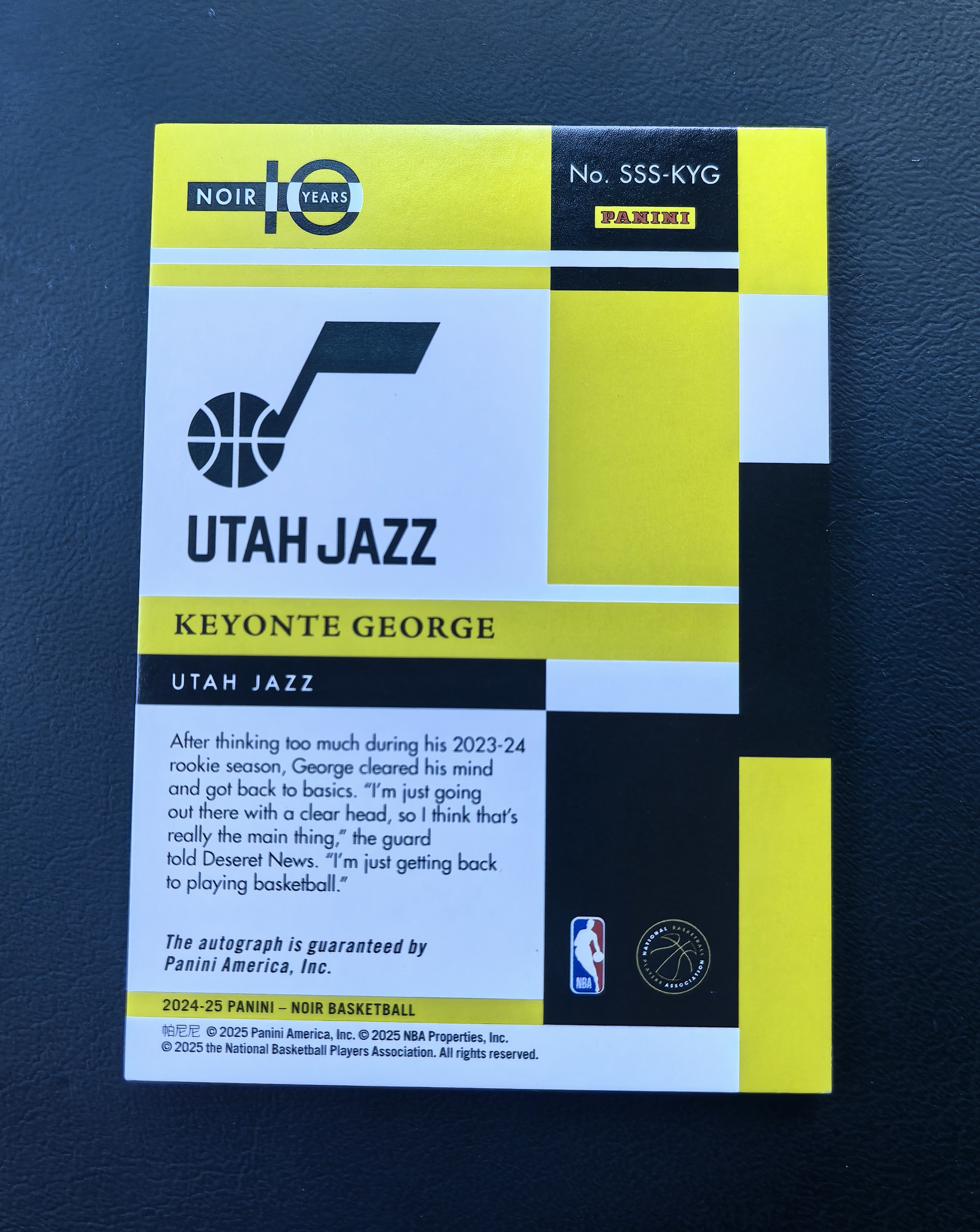 2024-25 Panini Noir Keyonte George 诺尔 基昂特 乔治 签字 鞋灯签 球鞋聚光灯 镜面卡签 53/99编 潜力爆表 爵士 系列博点 专收必备