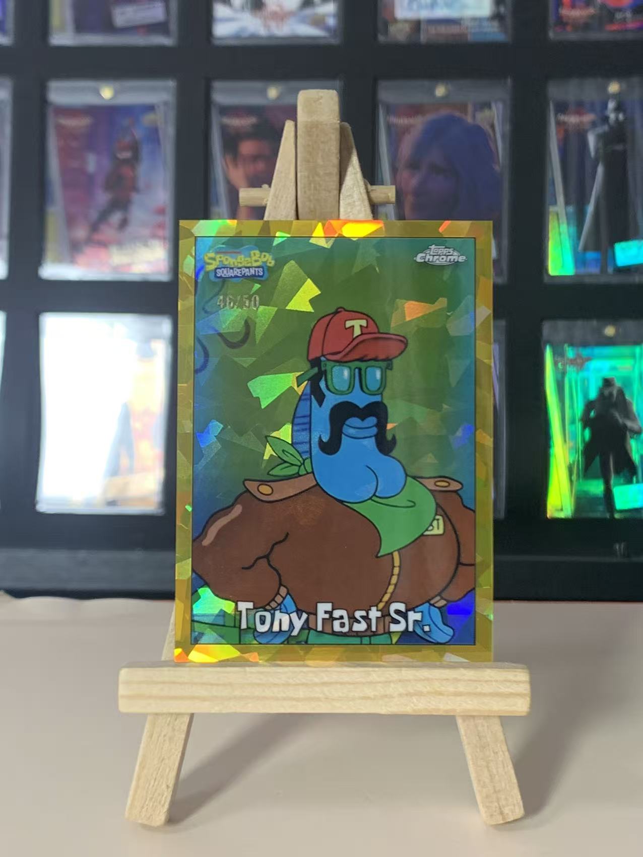 2025 Topps SpongeBob SquarePants Chrome 海绵宝宝 TC 蓝宝石 25周年 46/50编 金碎冰折 老托尼·法斯特 比奇堡 卡品如图【咪呼拆卡】-KB