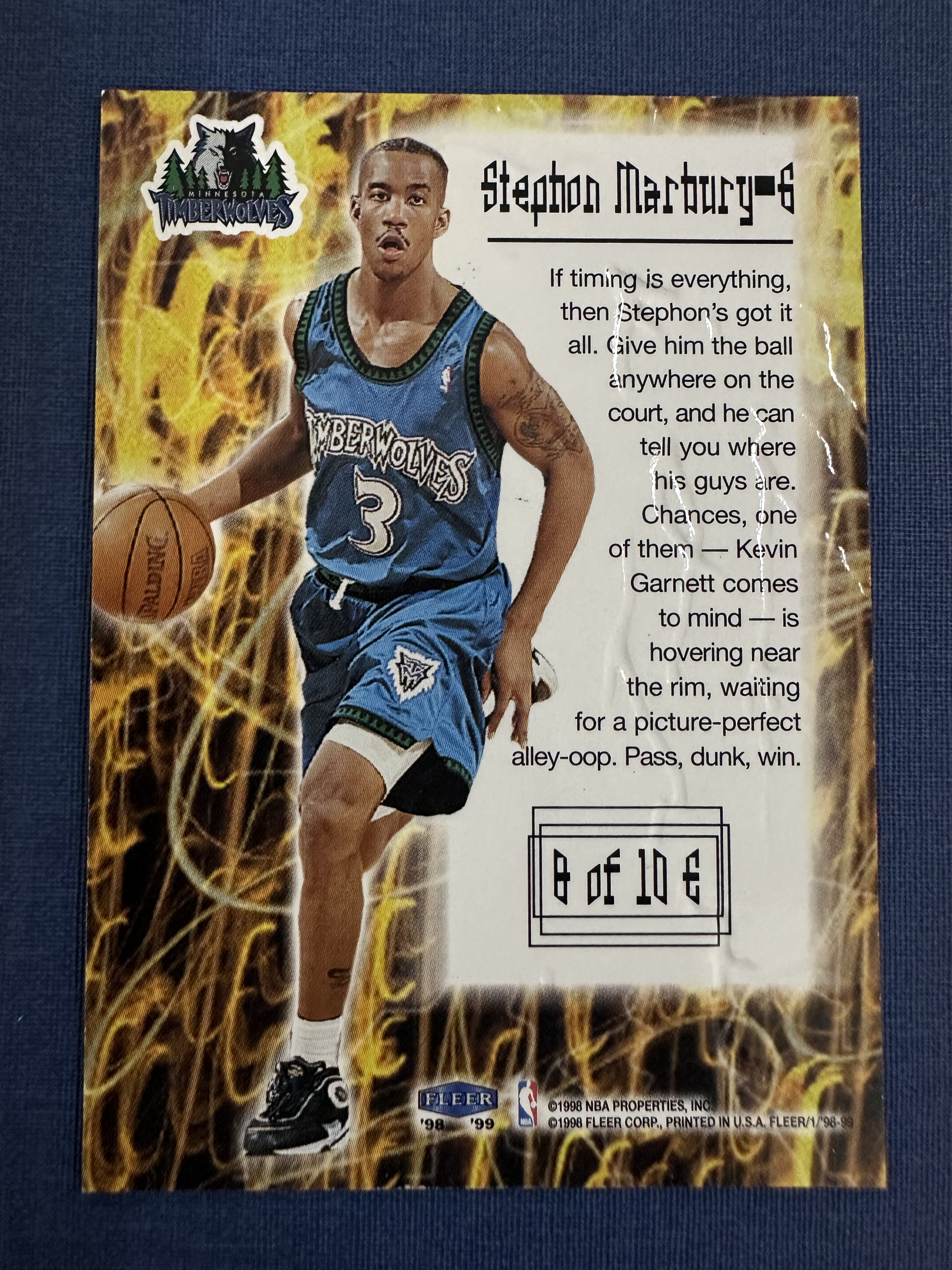 1998-99 SkyBox Fleer系列 Stephon Marbury 马布里1:72 闪电老特球星卡 非常精美 30年前老卡设计精美