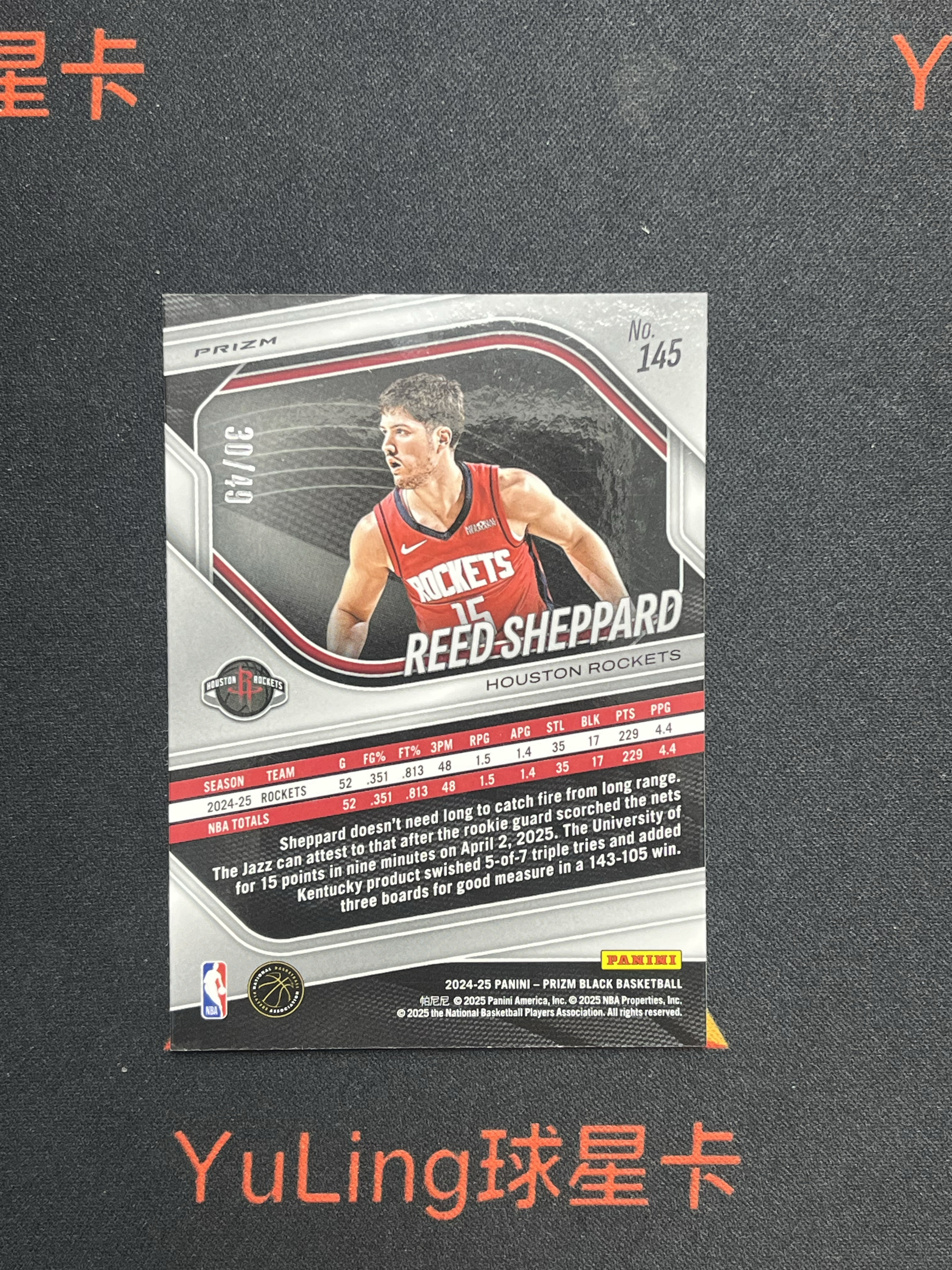 2024-25 Panini Prizm Reed Sheppard RC 【YuLing免手续费代卖】里德 谢泼德 火箭 新秀 PZ black 橙折 折射 30/49编 瑕疵如图 收藏必备
