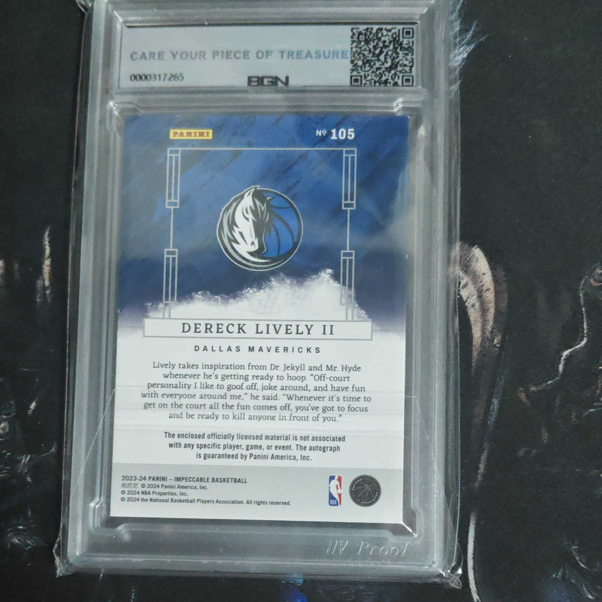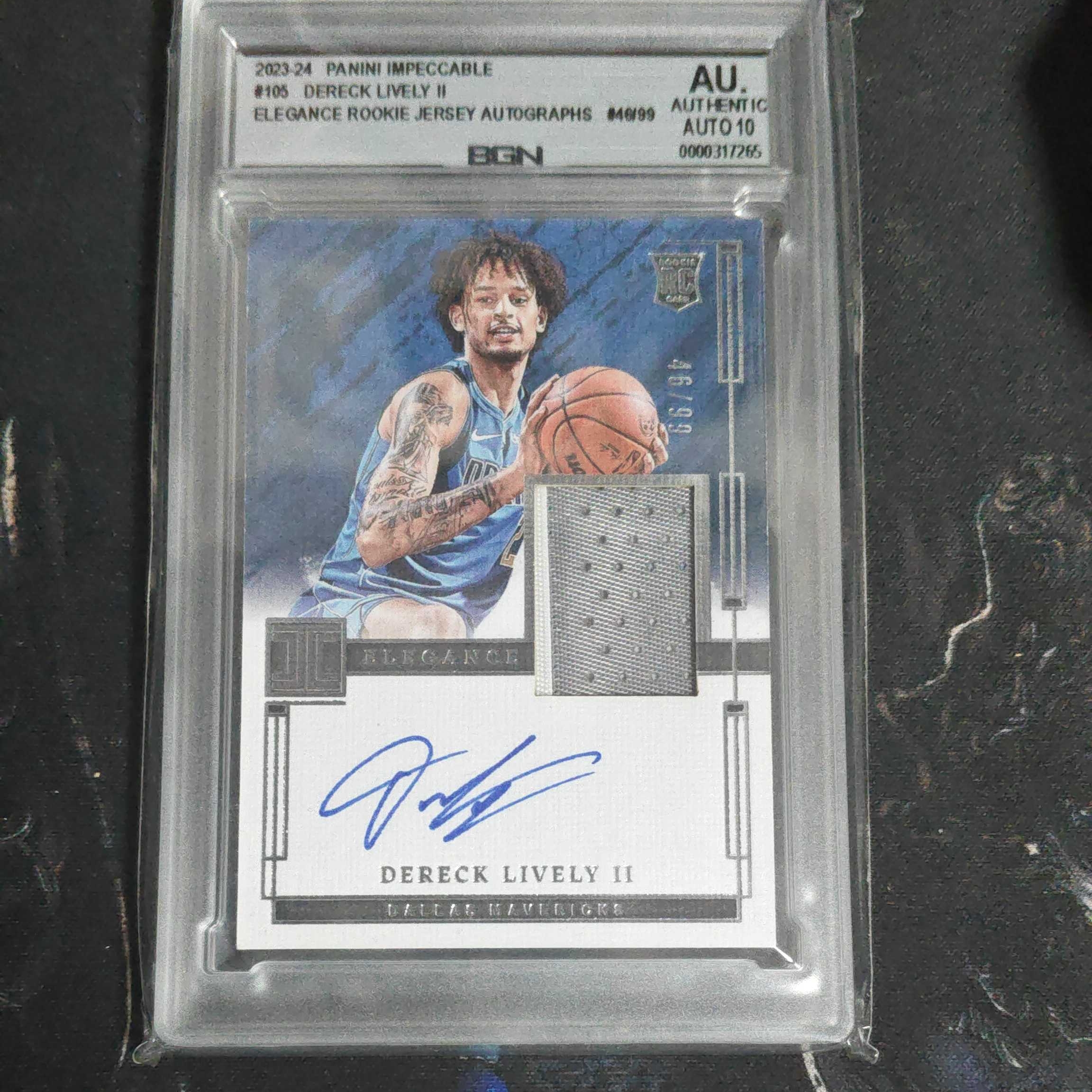 2023-24 Panini Impeccable Dereck Lively II RC 独行侠新秀 德里克 莱夫利二世 小真金 46/99编 rpa 双色切割 墨迹完美 bgn鉴真 墨迹10分