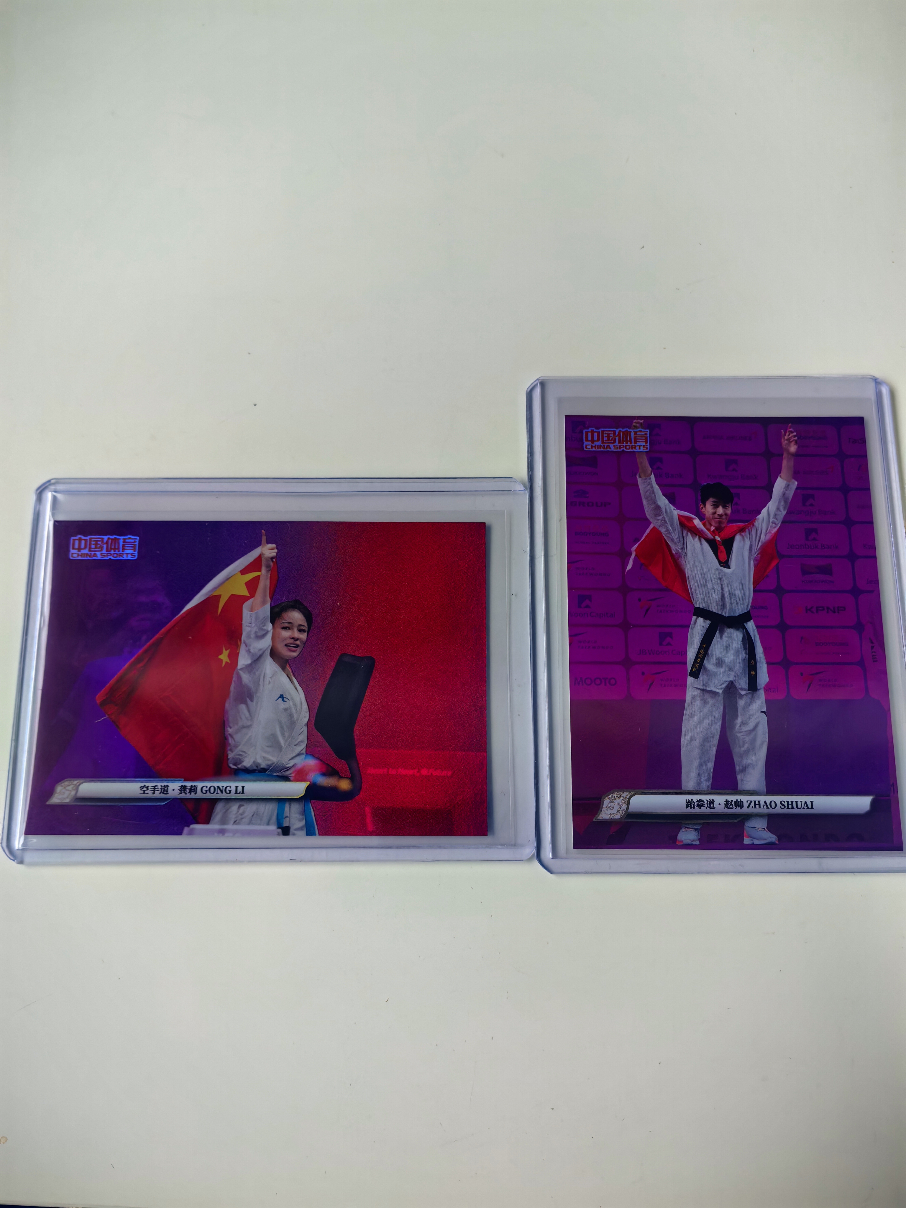 2025 奇卡 QICA 锦绣 龚莉 中国体育 空手道 美女 龚莉 跆拳道 帅哥 赵帅 49编 桃花粉折 粉平行 两张打包 lot