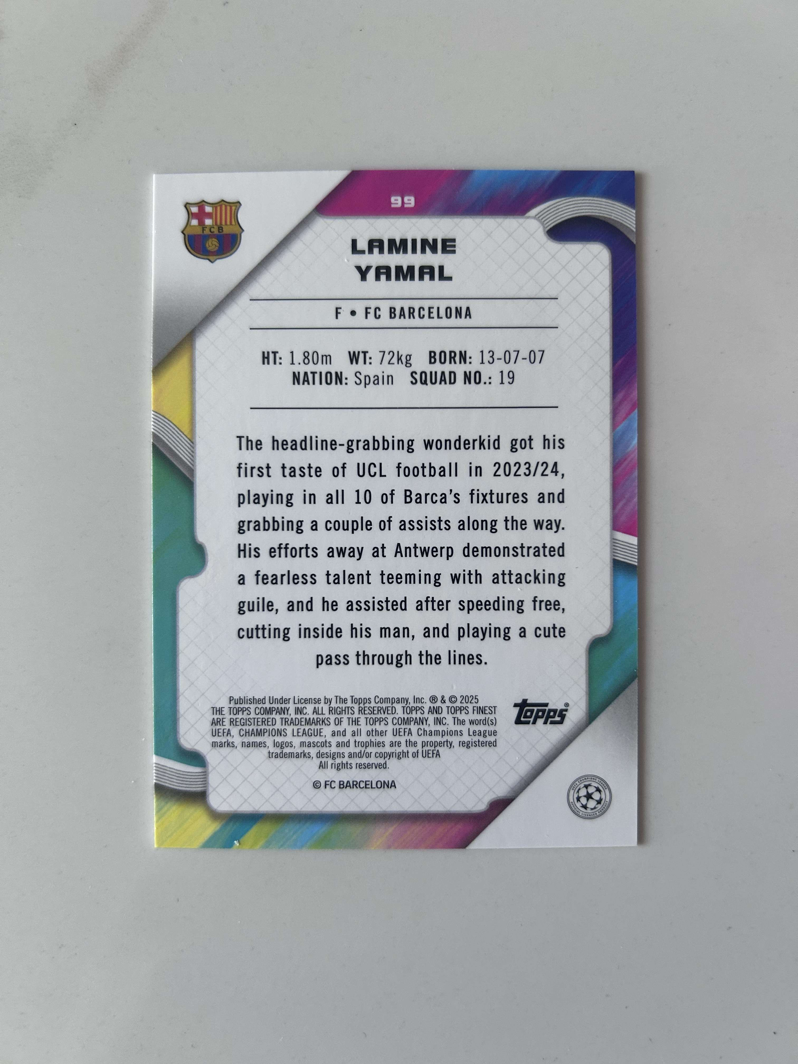 2025 Topps Finest Lamine Yamal 西甲 巴塞罗那 拉明·亚马尔 199编 紫熔岩折射 大热 稀有 实卡精美 卡品如图 凑套收藏必入