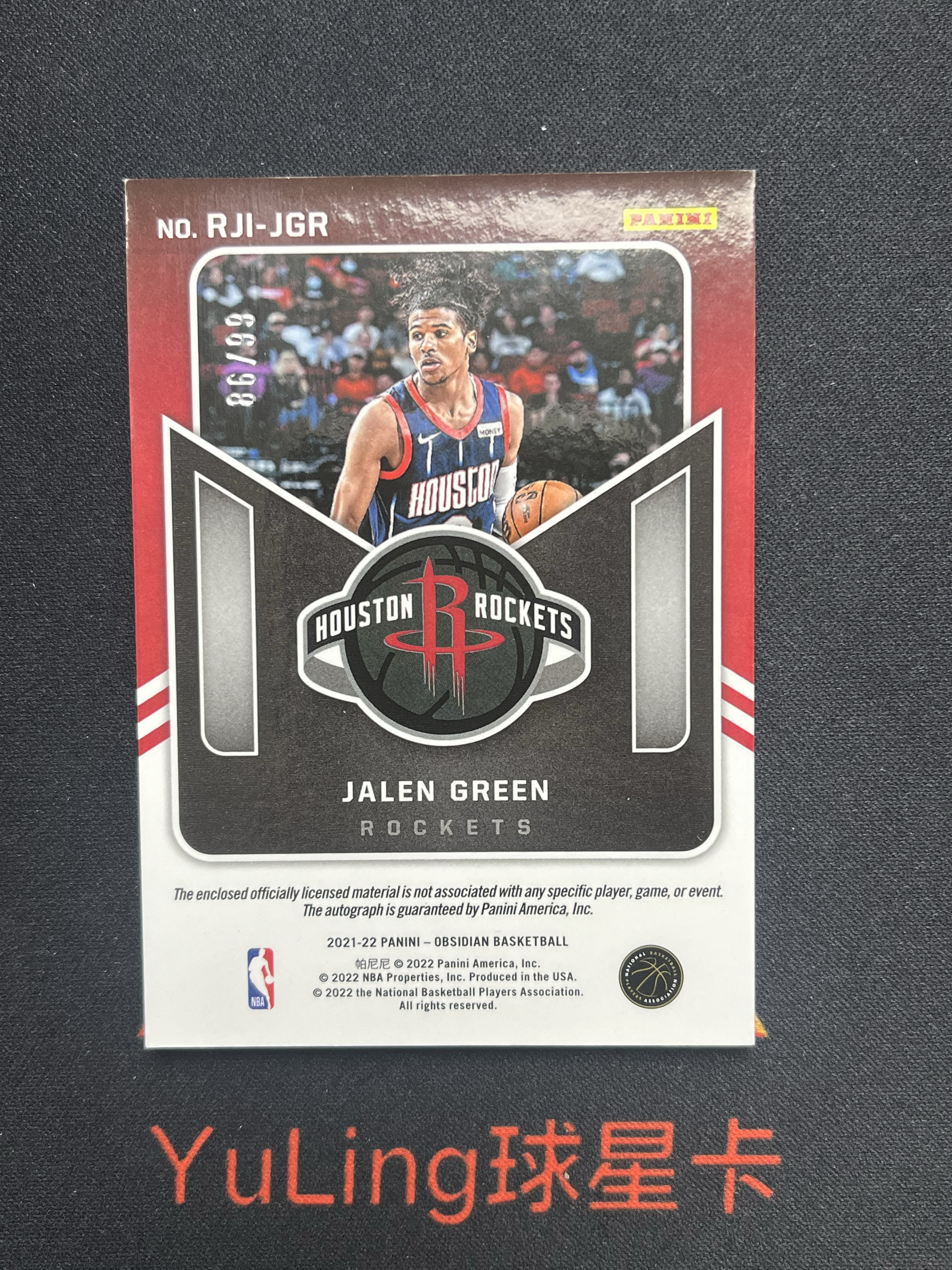 2021-22 Panini Obsidian Jalen Green RC 【YuLing免手续费代卖】杰伦 格林 火箭 新秀 黑曜石 小窗球衣 签字 86/99编 瑕疵如图 收藏必备 B