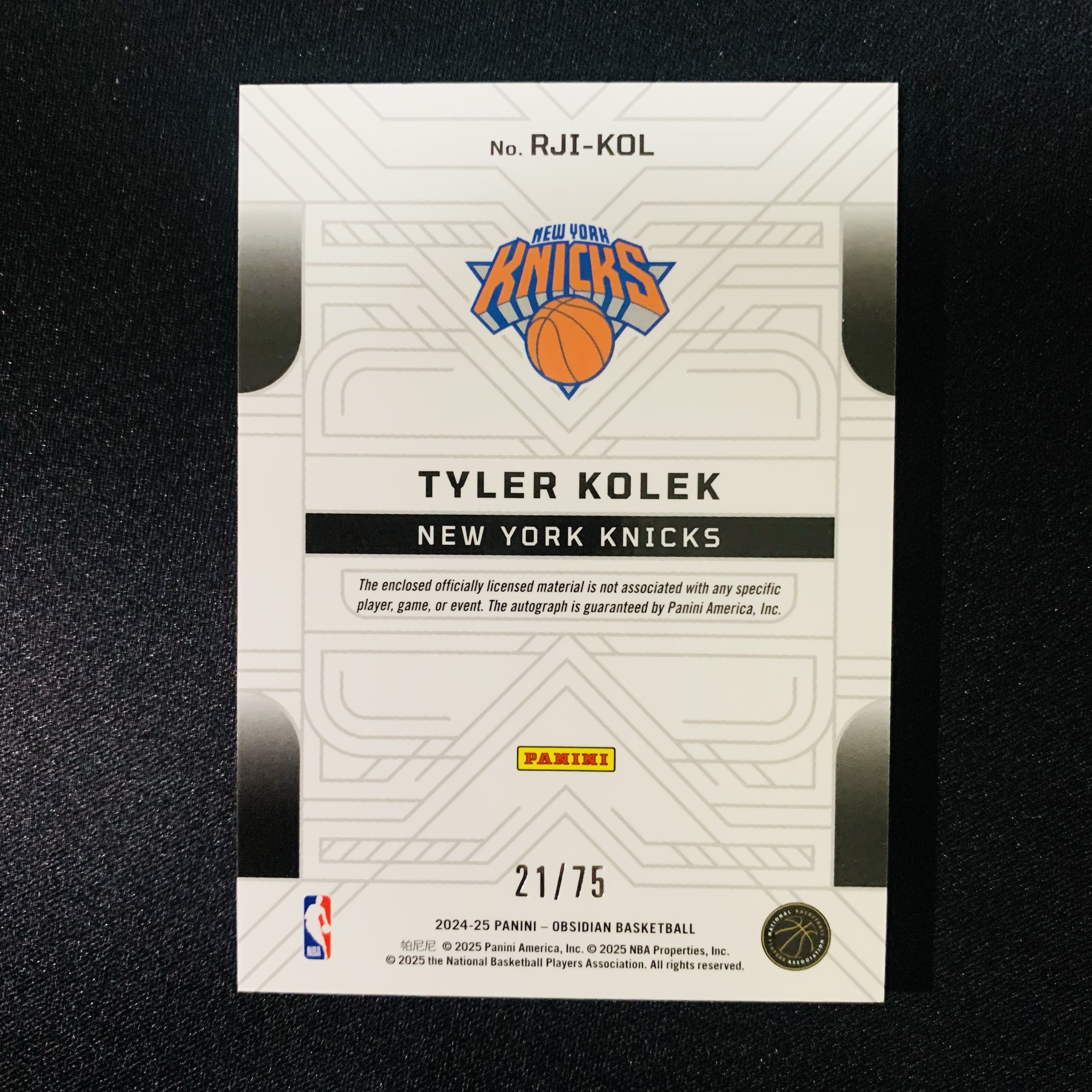 2024-25 Panini Obsidian Tyler Kolek RC 黑曜石 泰勒 科乐克 21/75编 RC新秀 三色球衣物料 折射 签字 RPA 收藏必备 卡品如图 范