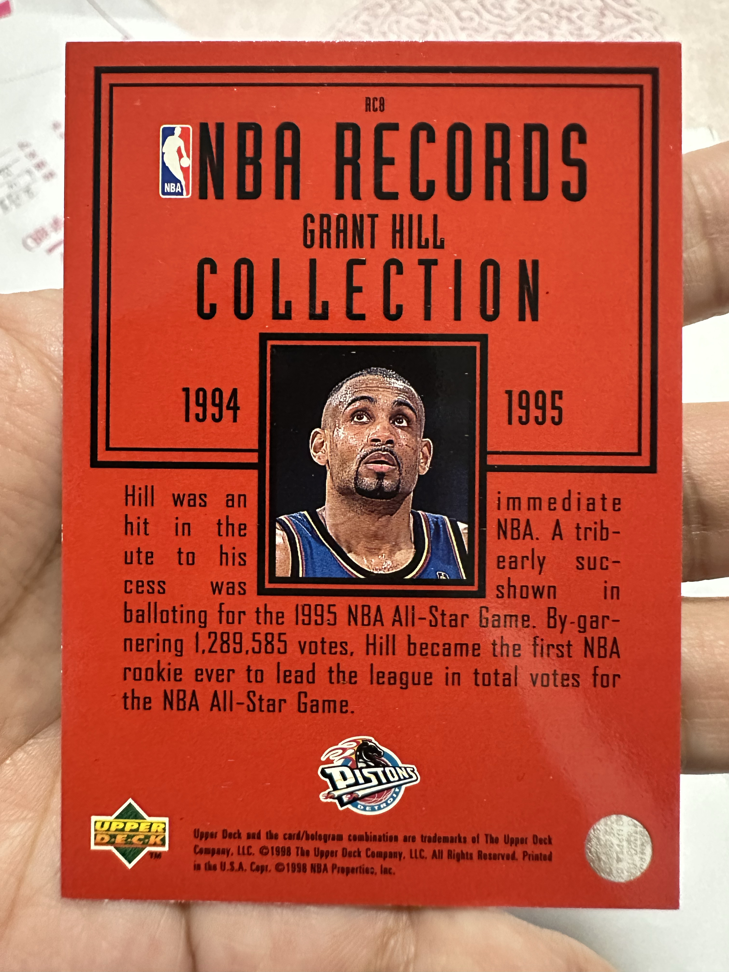 1997-98 Upper Deck UD1系列 格兰特希尔 1:36 大比例 黑胶唱片老特球星卡