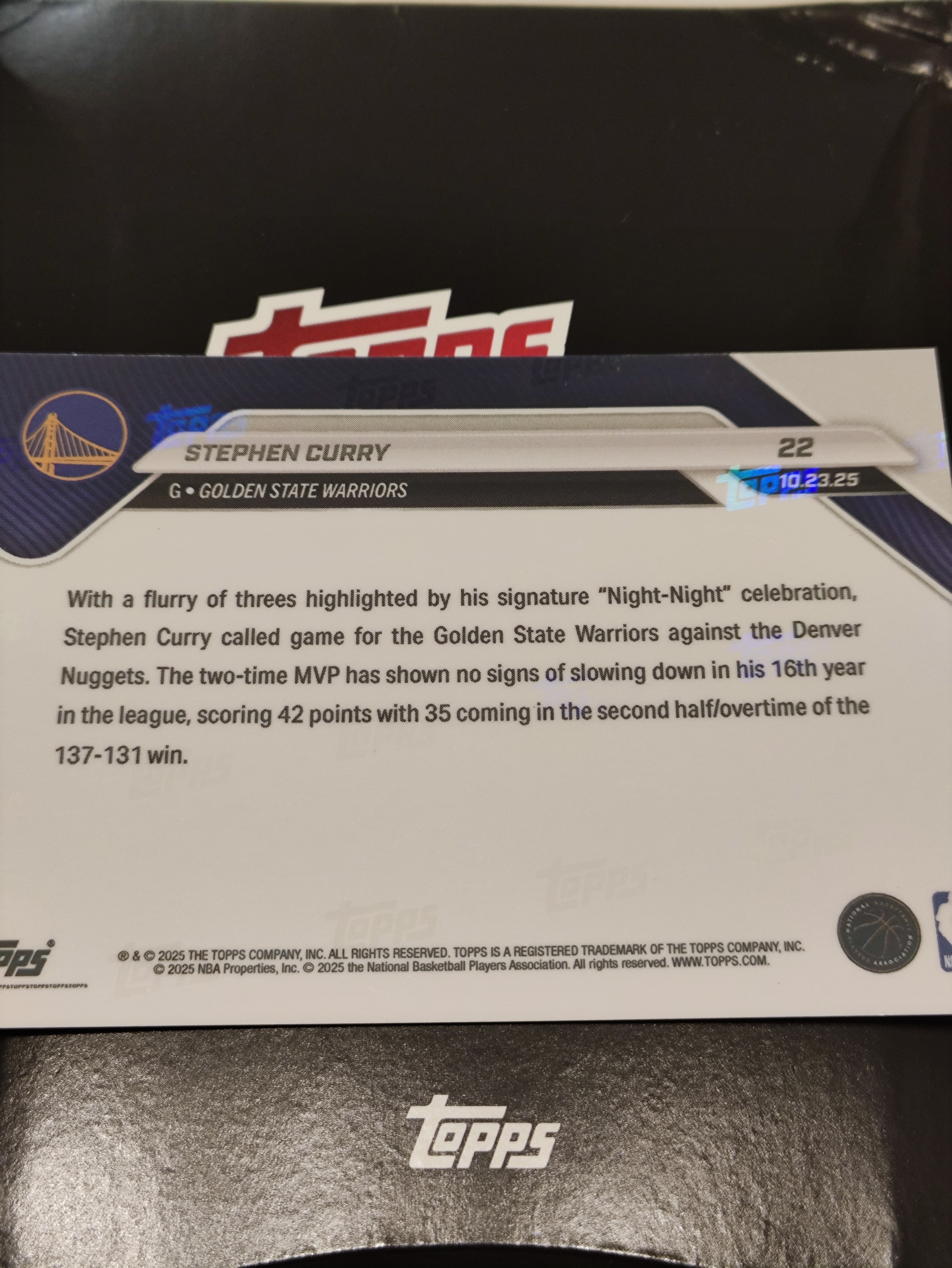 2025 Topps now Stephen Curry NBA 金州勇士 史蒂芬 库里  晚安 进球