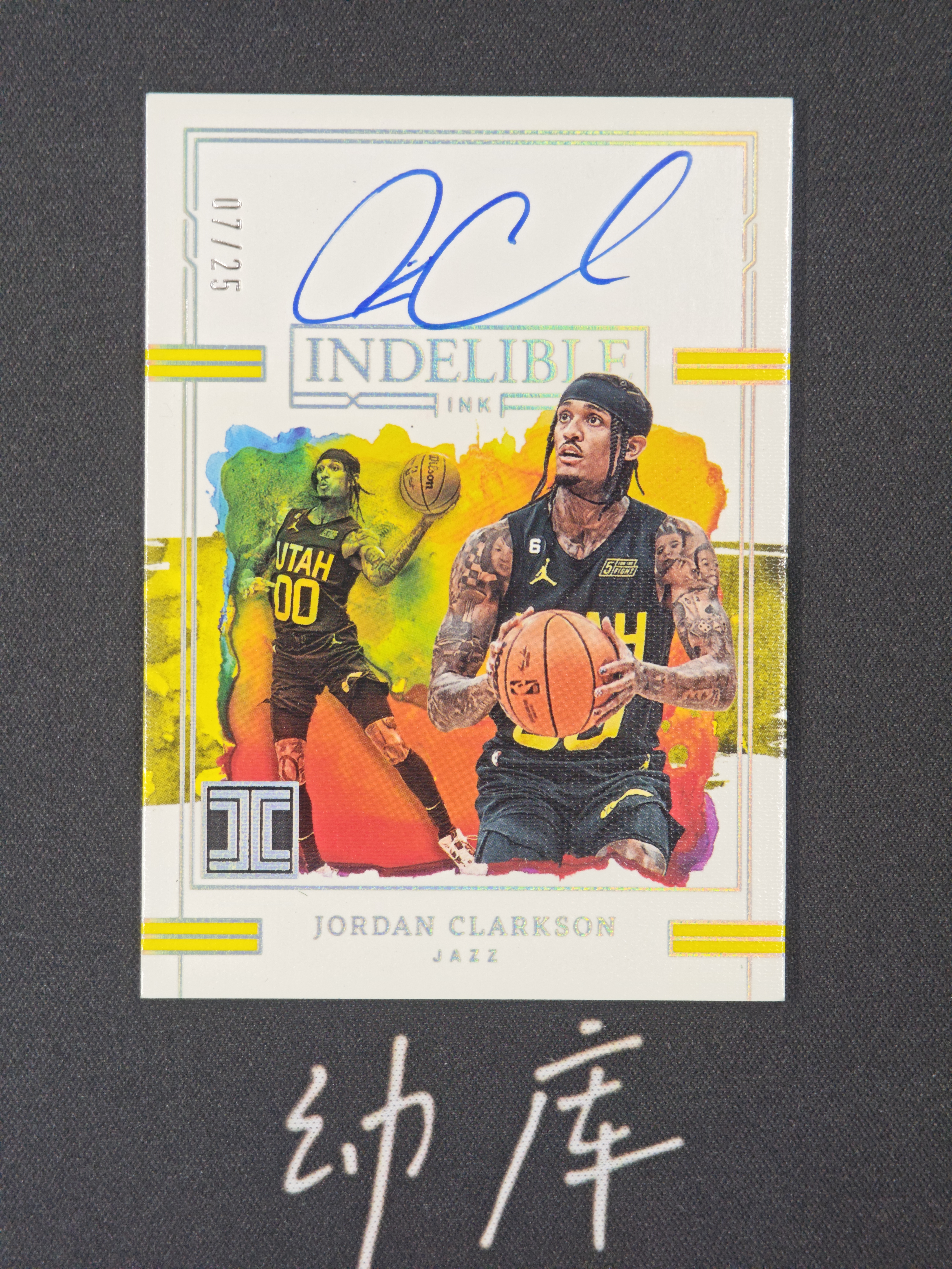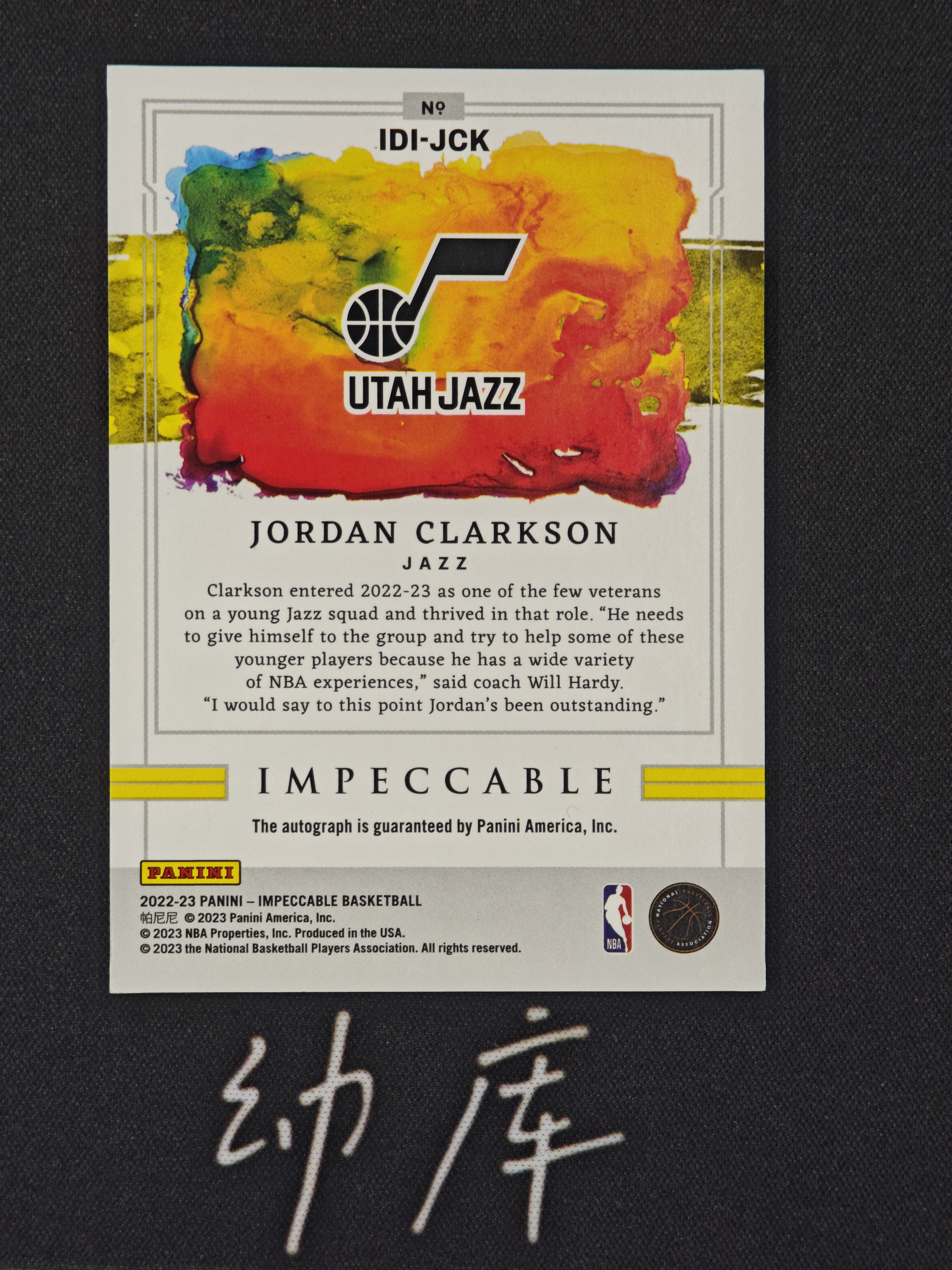 2022-23 Panini Impeccable Jordan Clarkson 小真金「幼库拍卖」乔丹 克拉克森 爵士 菲律宾乔丹 07/25编 卡签 签字 ink签 闪版 湖水蓝 折射 卡品如图