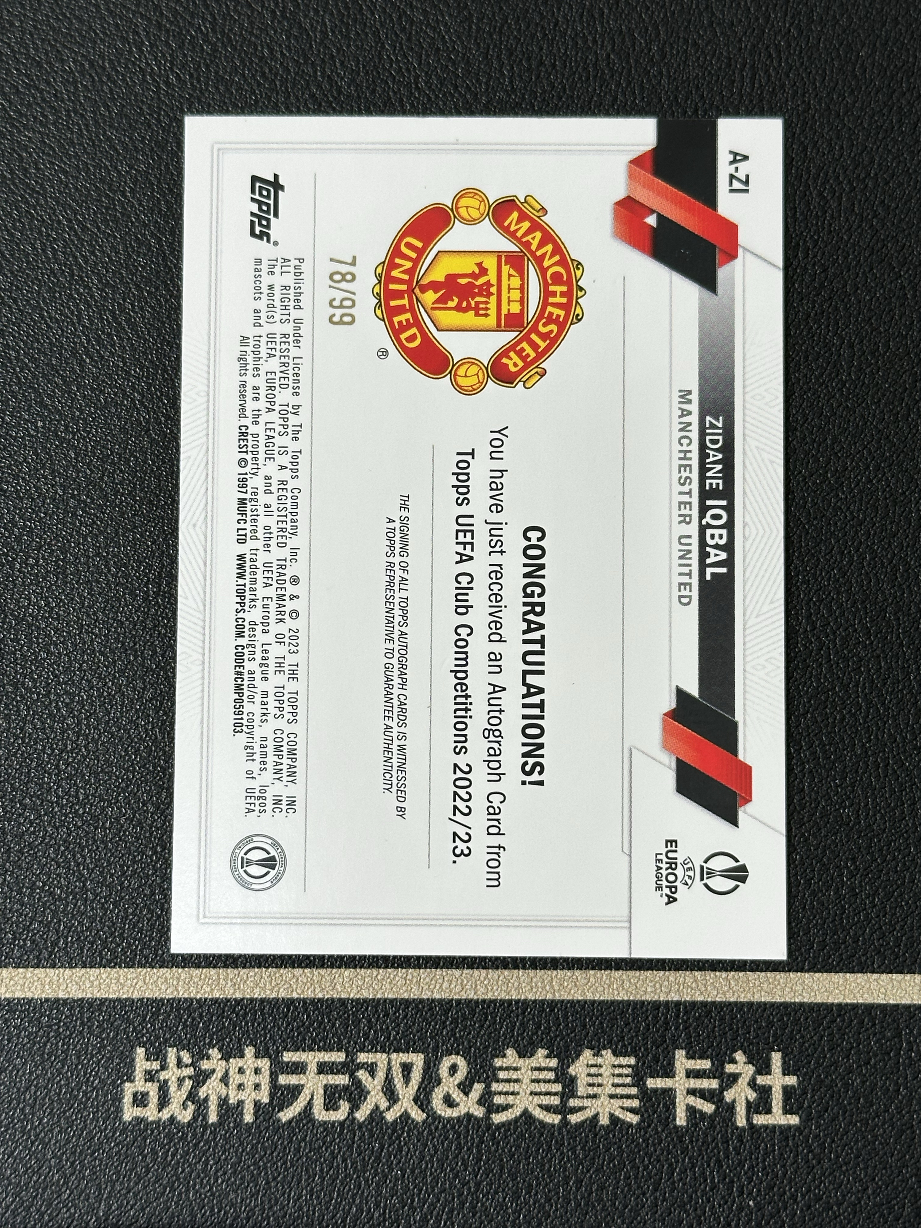 2023 Topps UEFA Zidane Iqbal 欧战 UCC 曼联 伊克巴尔 78/99编 签字 小齐达内 蓝折 战神无双 (风)