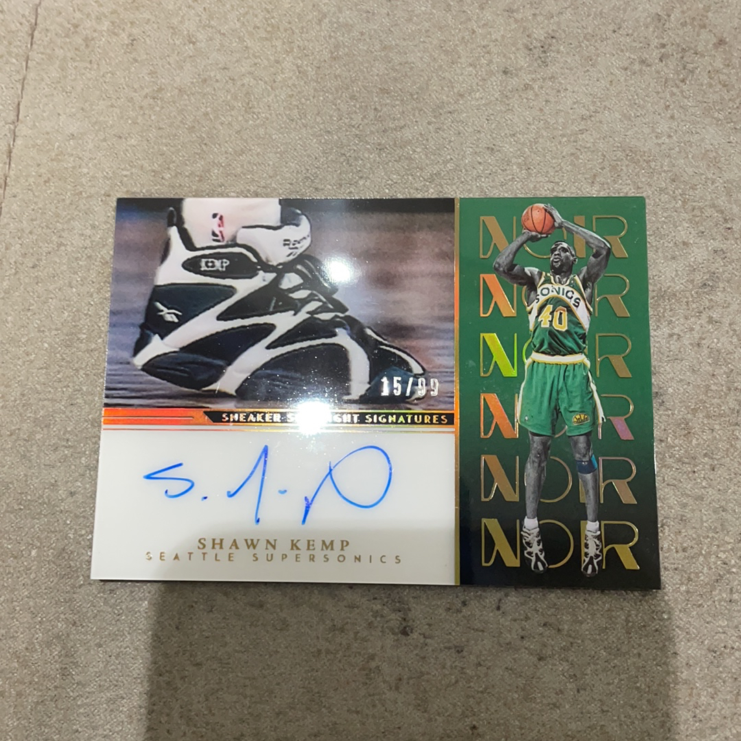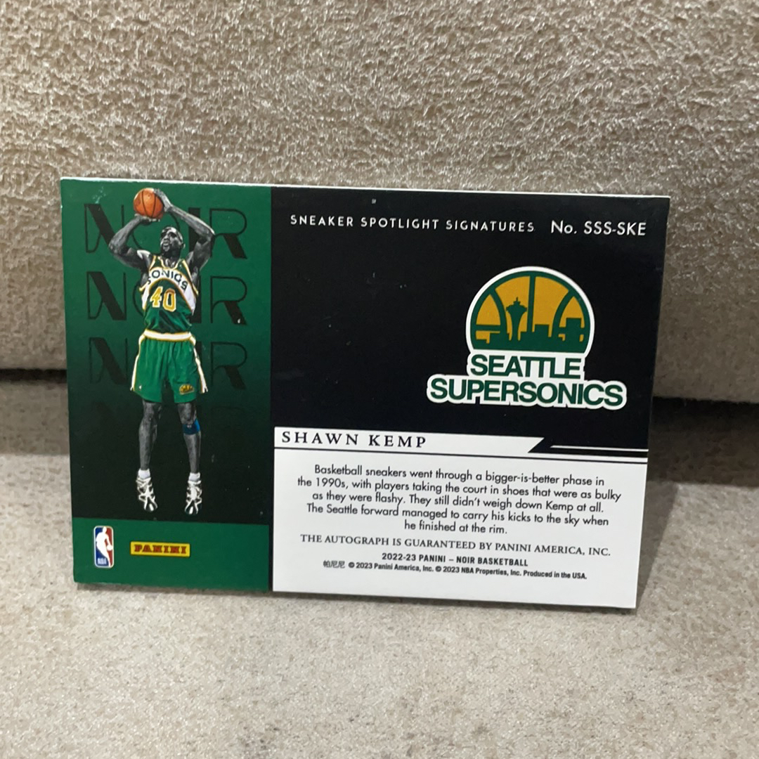 2022-23 Panini Noir Shawn Kemp 雨人 肖恩 坎普 西雅图超音速 暴力扣将 锐步经典球鞋 鞋灯签 卡签 签字 聚光灯 99编 瑕疵如图