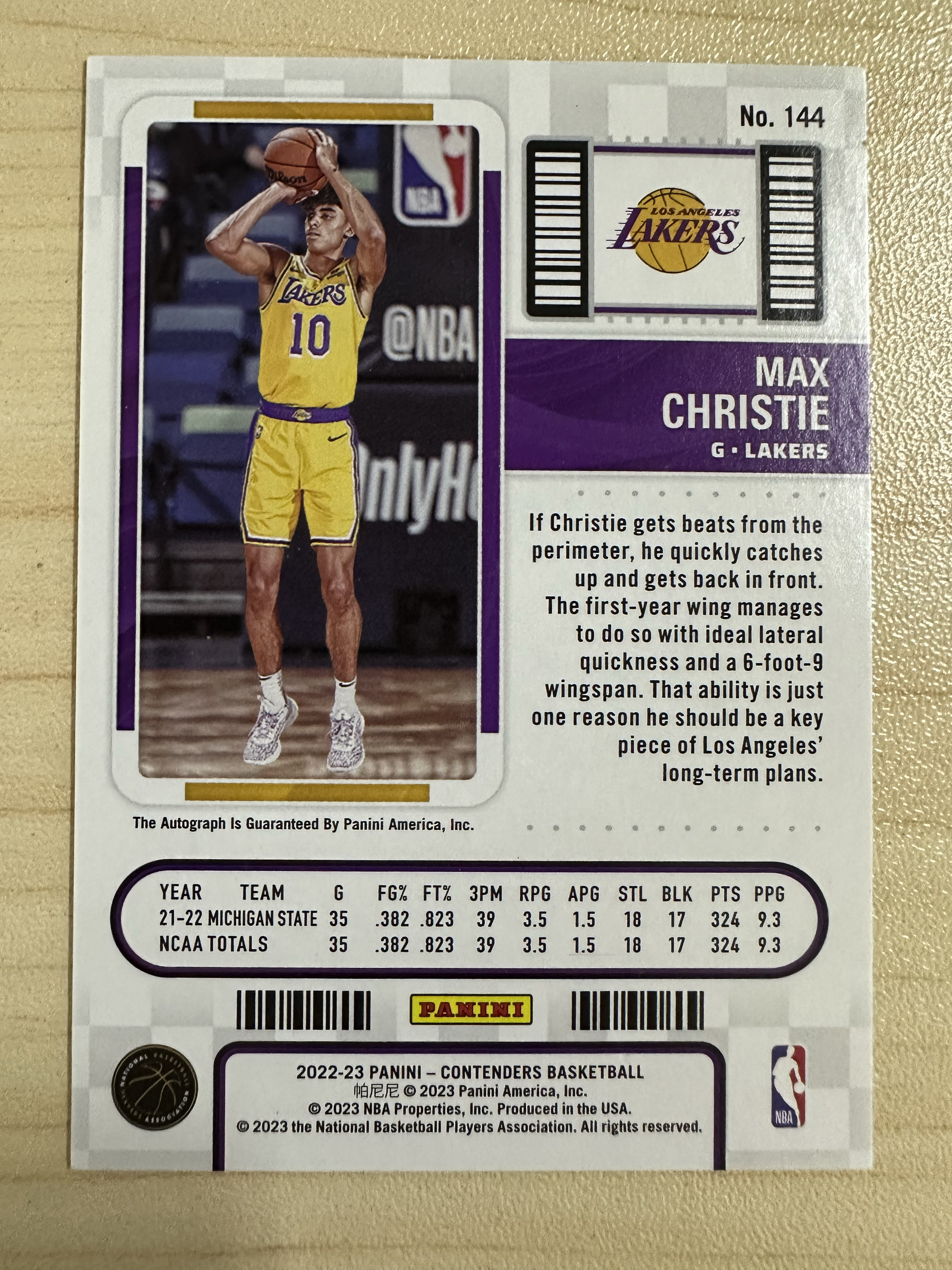 2022-23 Panini Contenders 克里斯蒂 RC 小科比 新秀签字卡