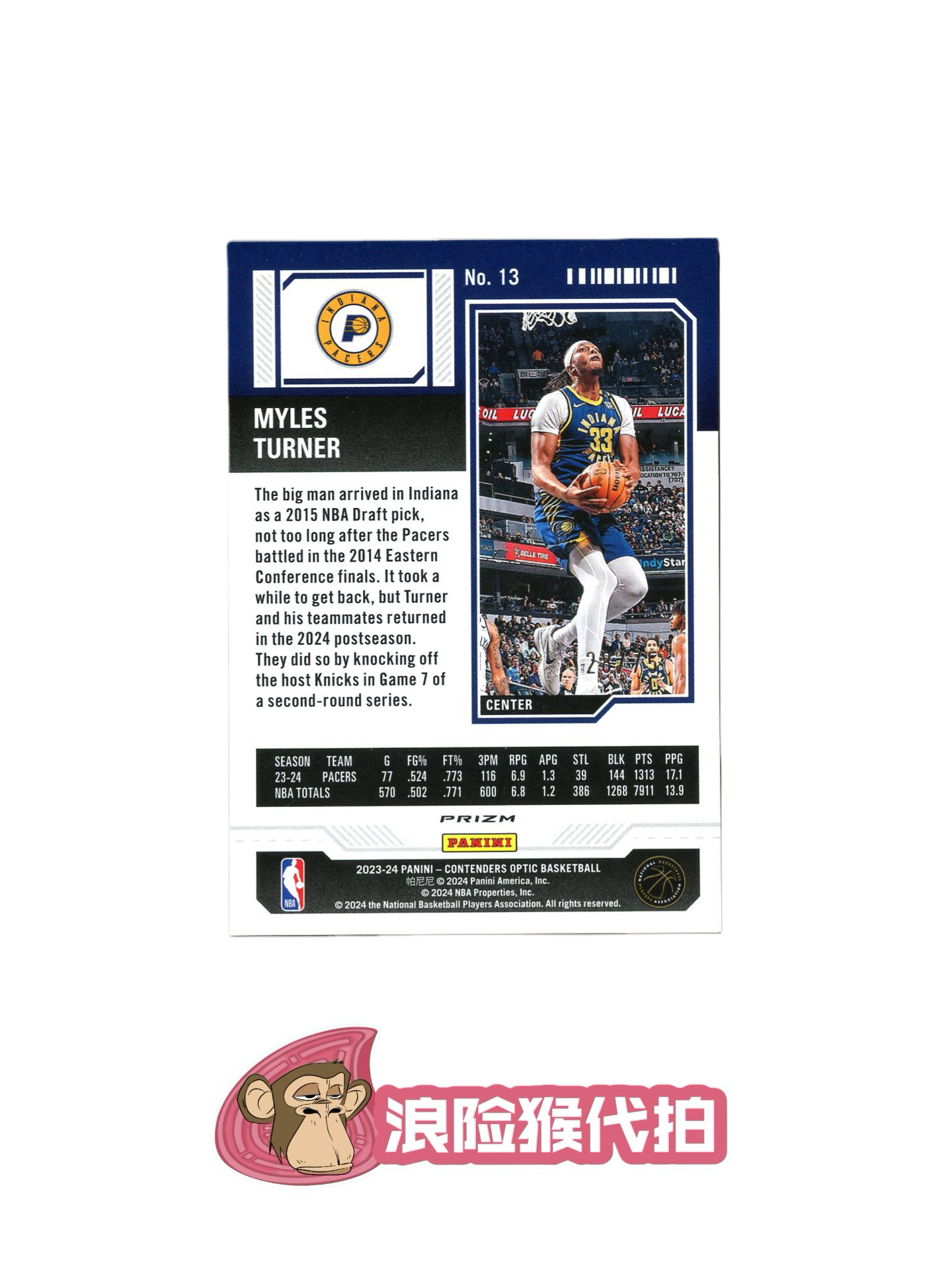 【浪险猴🐒代拍】2023-24 Panini Contenders Optic Myles Turner 球票op 步行者 迈尔斯 特纳 75编 紫折 收藏必备 黎明