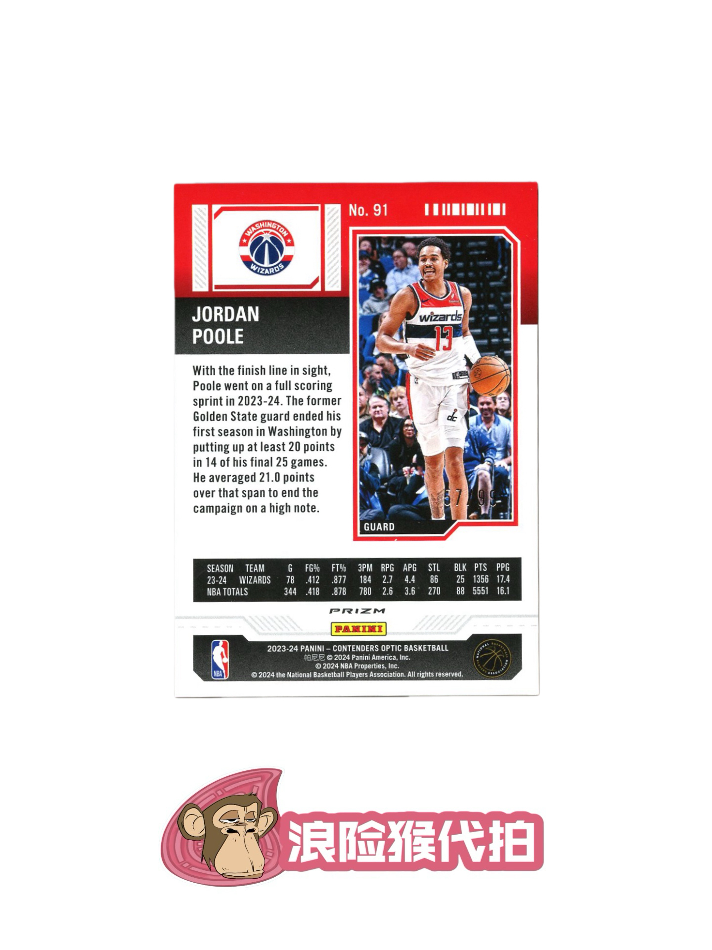 【浪险猴🐒代拍】2023-24 Panini Contenders Optic Jordan Poole 球票op 奇才 乔丹 普尔 普洱 99编 蓝折 卡品如图 黎明