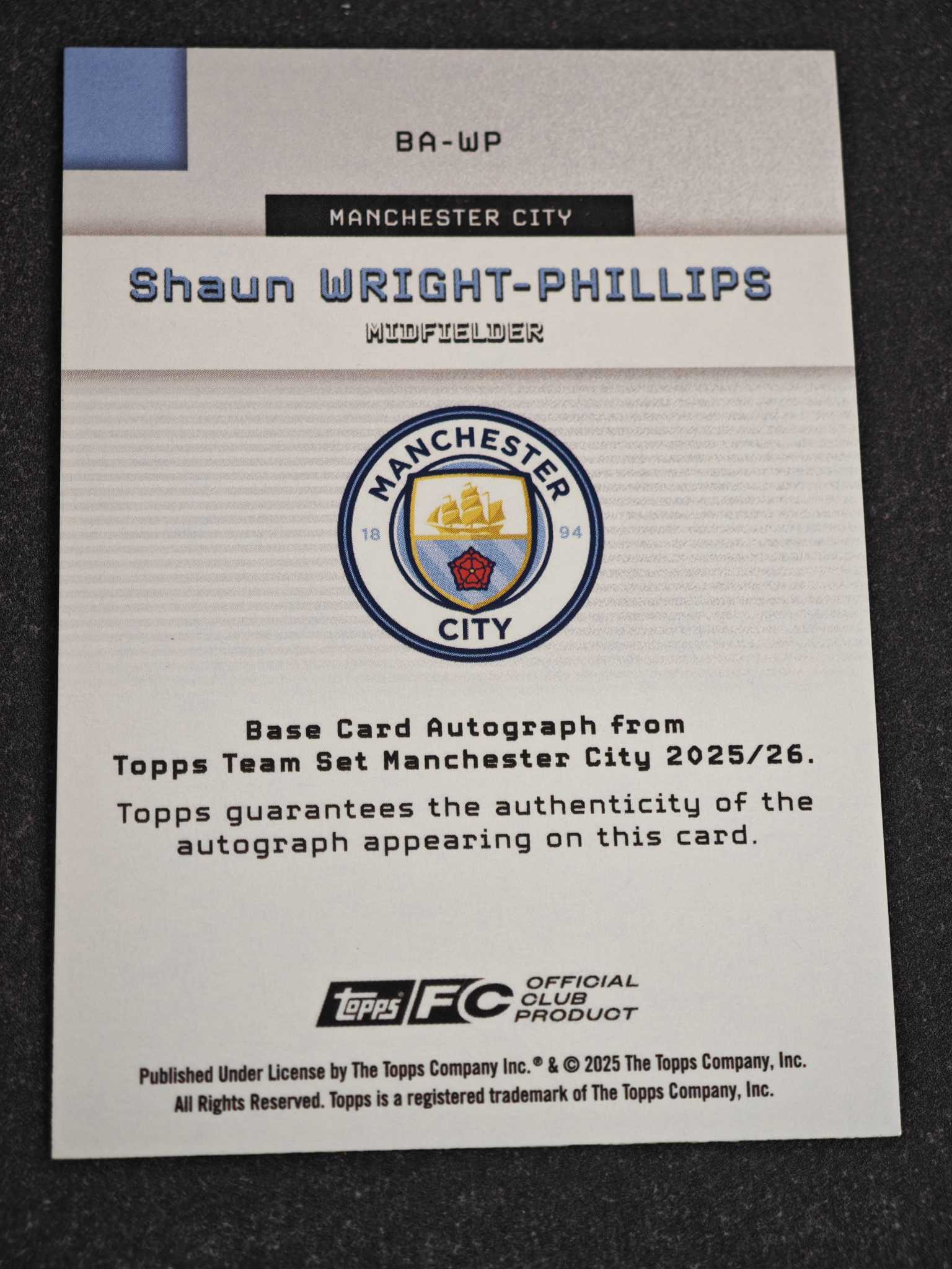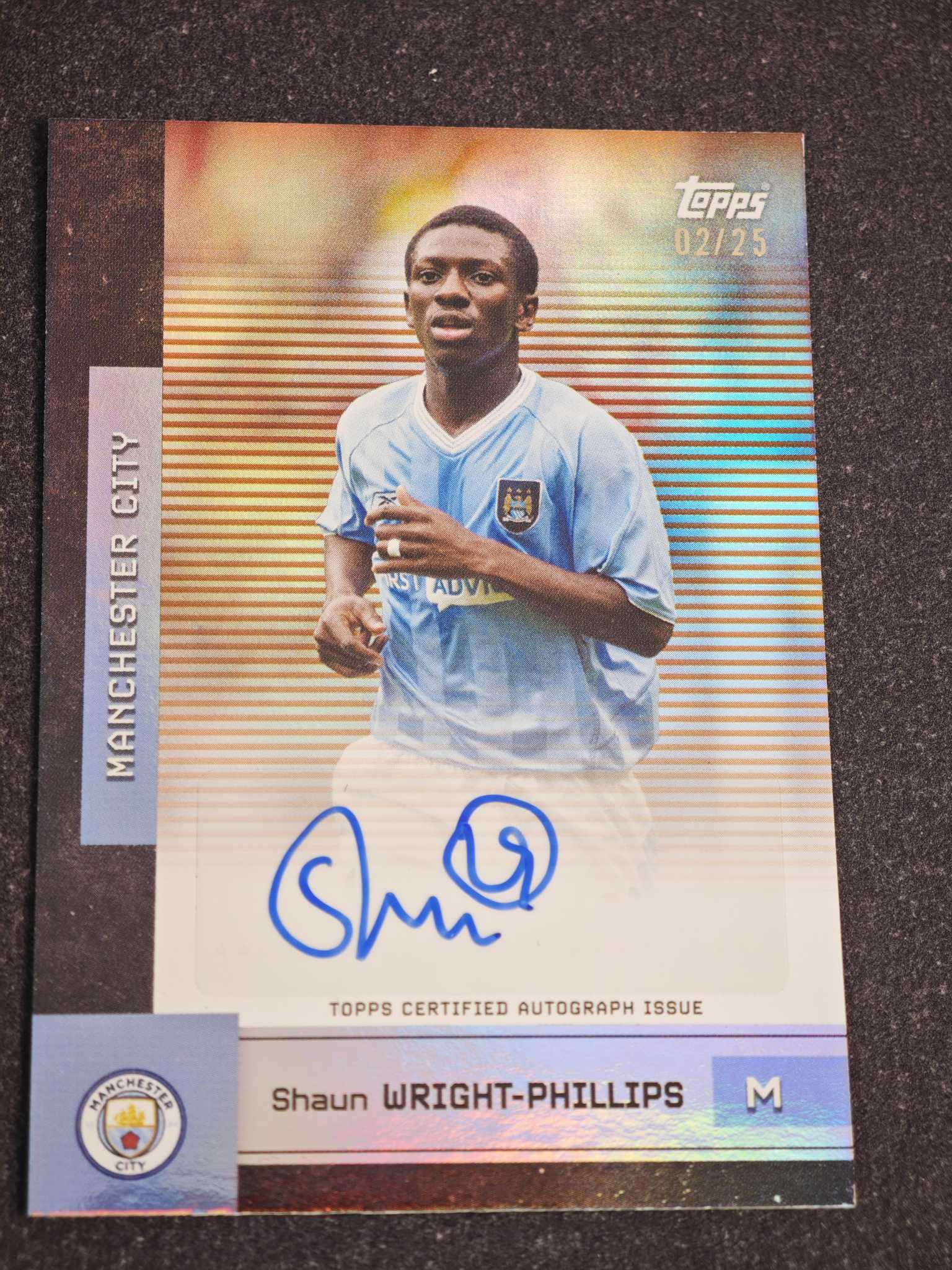 2025-26 Topps 曼城队盒 Shaun Wright Phillips 【小灰机】最新曼城队盒 菲利普斯 02/25编 橙折 签字 卡品瑕疵如图 4521