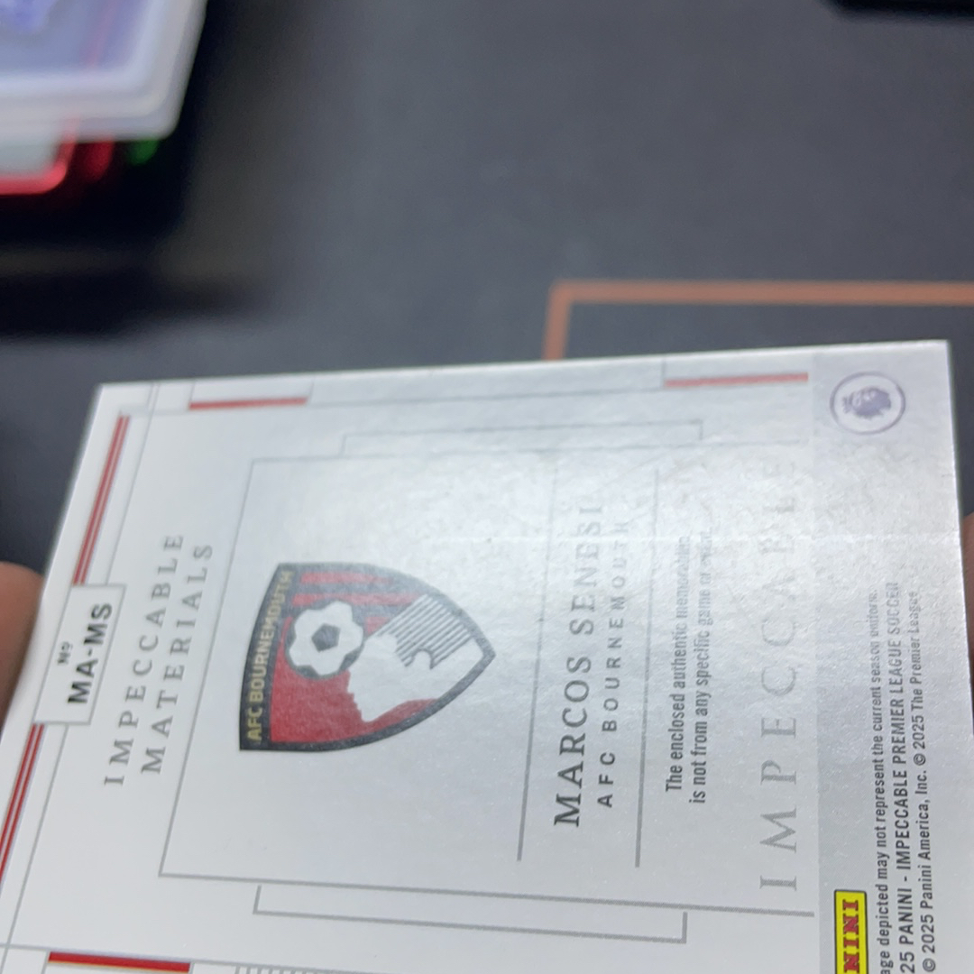 (怪兽拍卖) GSW-C88 2024-25 Panini Impeccable 小真金 Marcos Senesi 马科斯·塞内西 伯恩茅斯 英超 patch物料切割 25编 图3微瑕