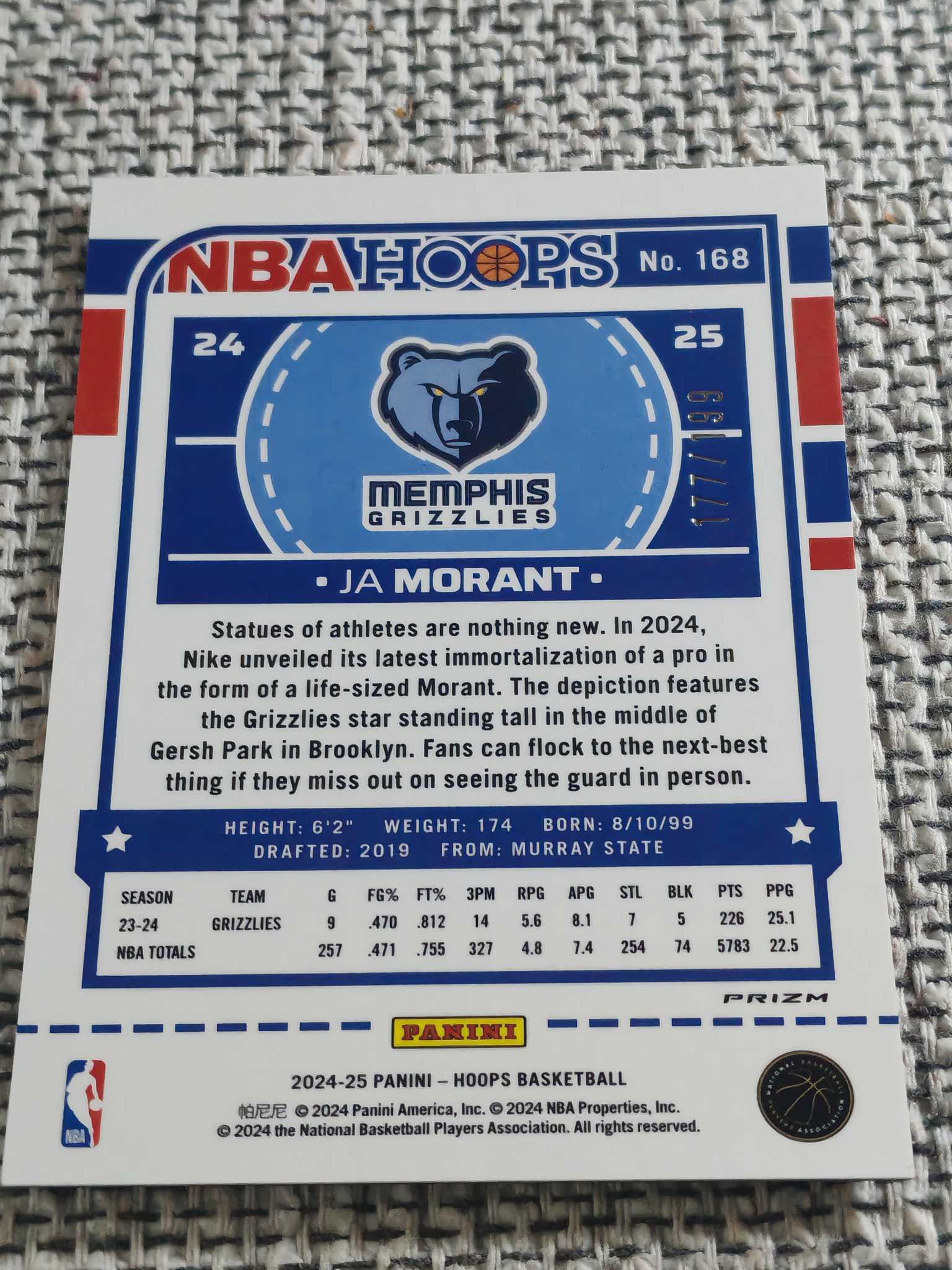 2024-25 Panini NBA Hoops Ja Morant 贾 莫兰特 /199编 带编 橙折 YeZi代卖 超低编 灰熊队
