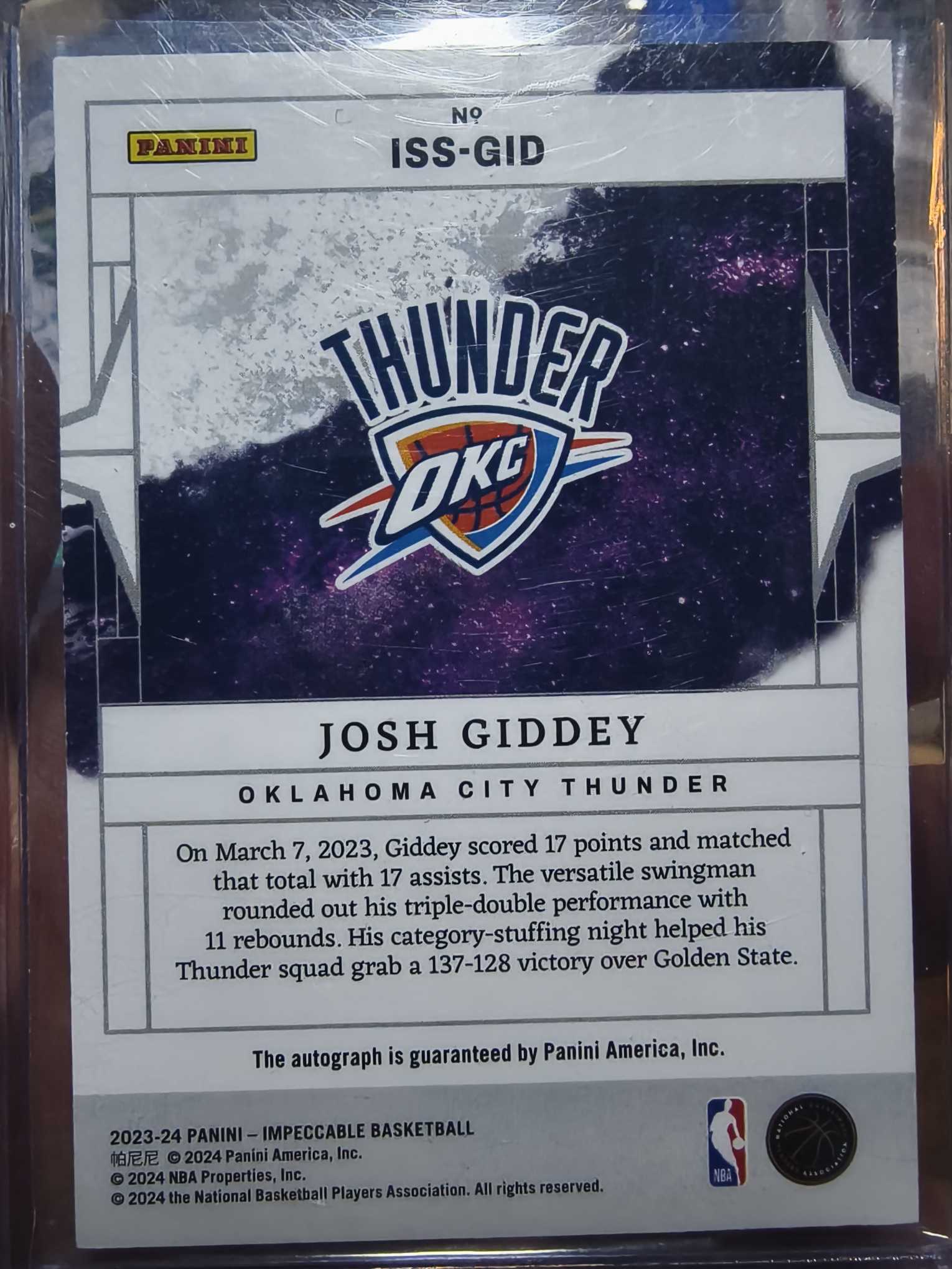 2023-24 Panini Immaculate Josh Giddey 约什 吉迪 小真金 卡签 签字 三双王 49编 雷霆 收藏专收必备 卡品墨迹瑕疵如图 公牛