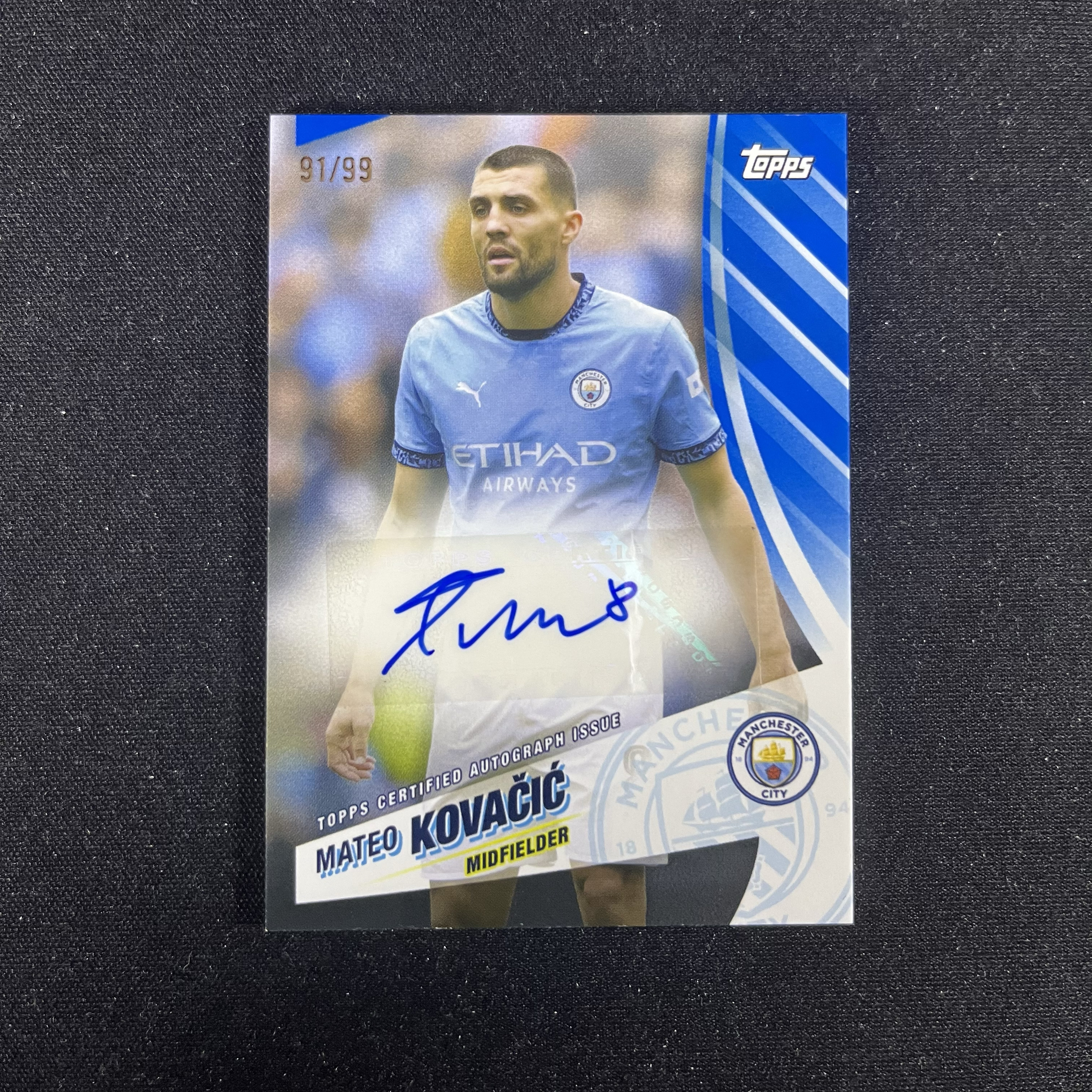 2024 Topps 曼城 蓝月 队盒 Mateo Kovacic 科瓦契奇 91/99编 蓝折 签字 曼城 克罗地亚 卡品如图 收藏必备【超玩代卖 墨】