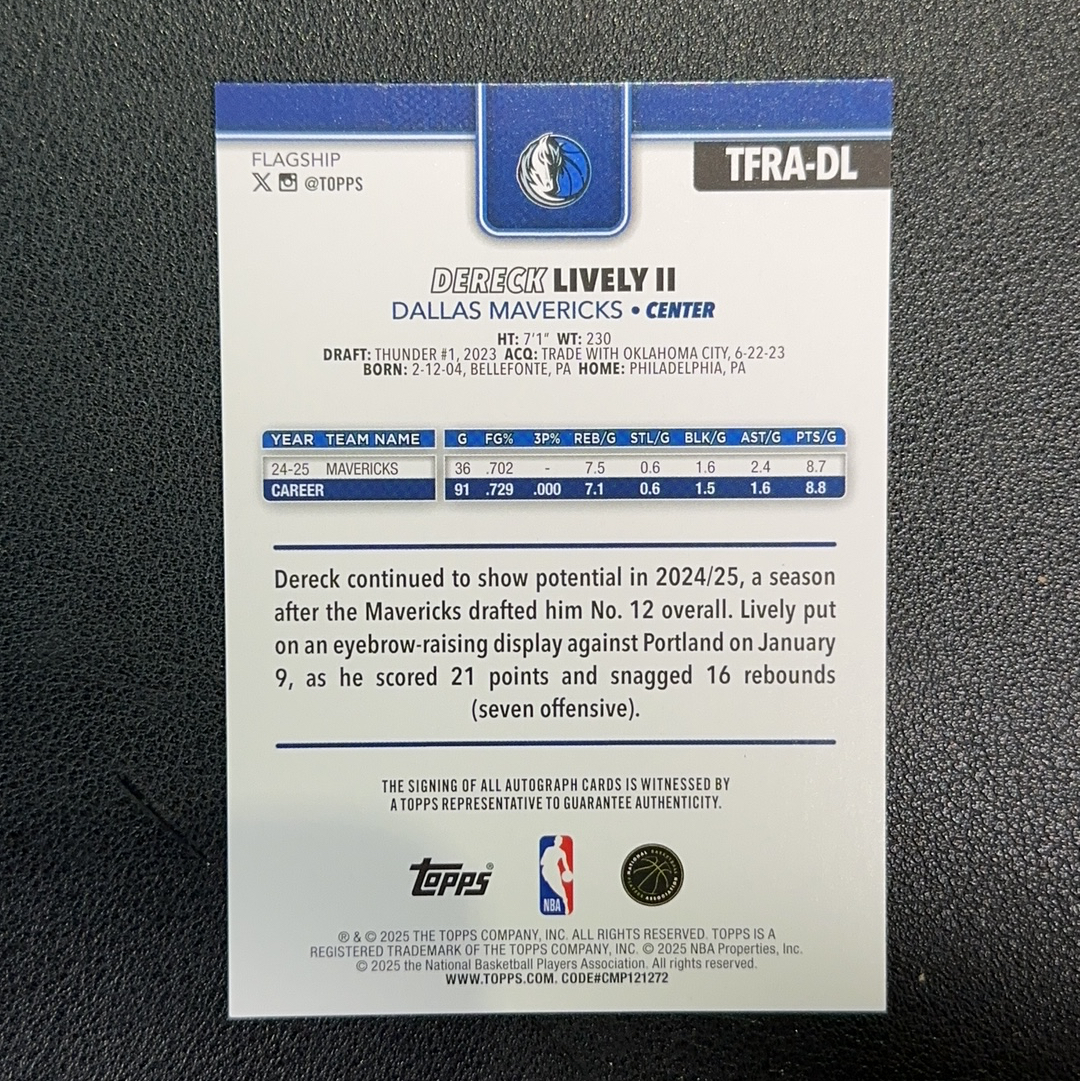 2025 Topps Flagship Dereck Lively II 独行侠 德里克 莱夫利二世 签字 卡签 专收 瑕疵图 SH007 b381121