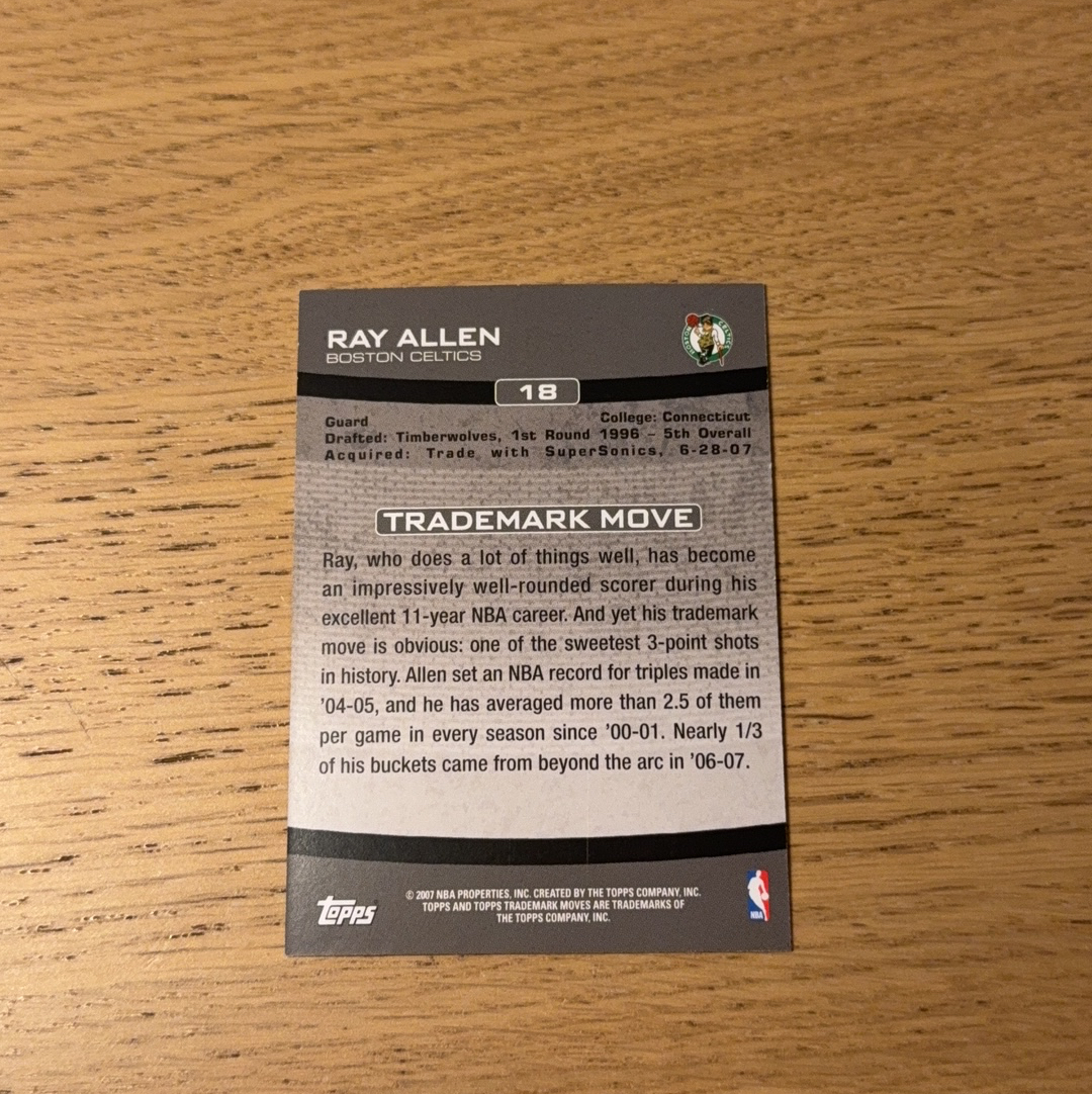 2007-08 Topps Trademark Moves Ray Allen 波士顿凯尔特人 雷阿伦 限量399编