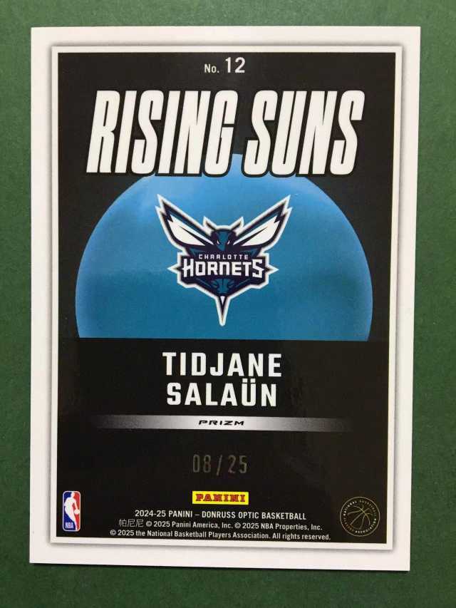 2024-25 Panini Optic Tidjane Salaun RC op 新秀 黄蜂 提贾尼 萨隆 25编 低编 绿圈圈折 绿折 RISING SUNS 日升特卡 专收凑套必备 卡品如图#孙