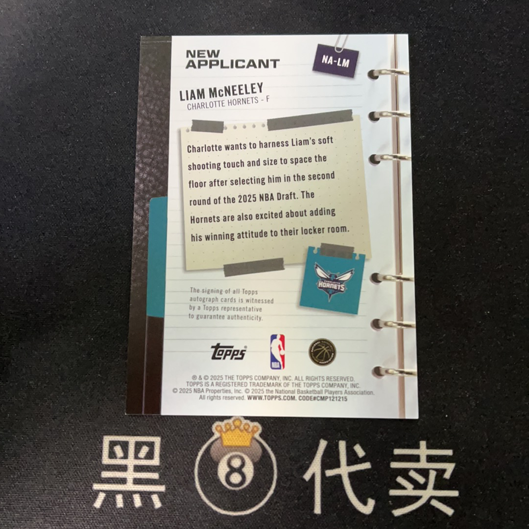 43【黑8代卖】2025 Topps系列 黄蜂 Liam Mcneeley 利亚姆 麦克尼利 RC 新秀 签字 签名 base 卡品如图【Han哥】