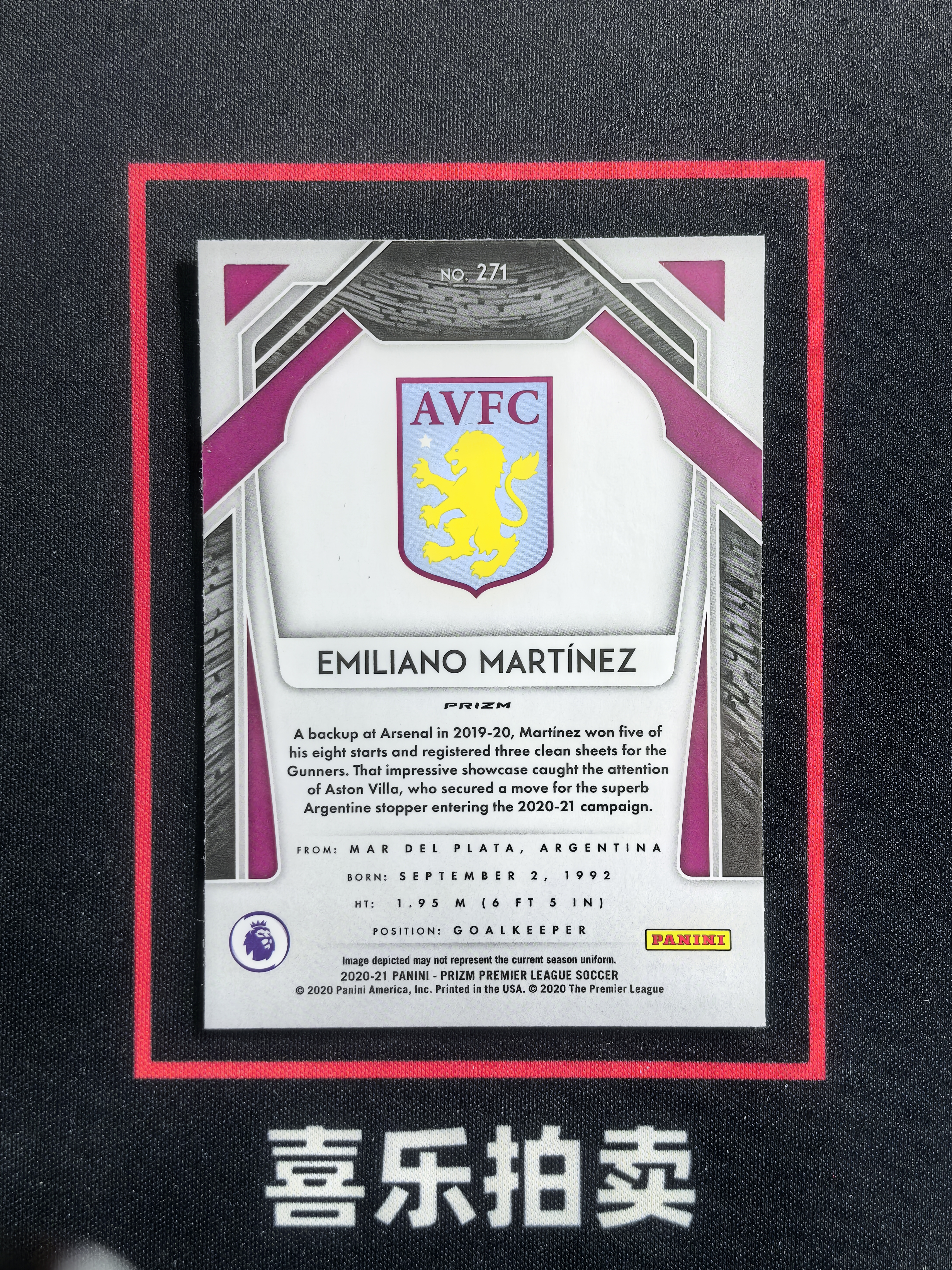 2020-21 Panini Prizm Emiliano Martínez 英超PZ 新秀RC 阿斯顿维拉 埃米利亚诺 马丁内斯 脉冲折 折射 潜力无限 卡品如图 sjl