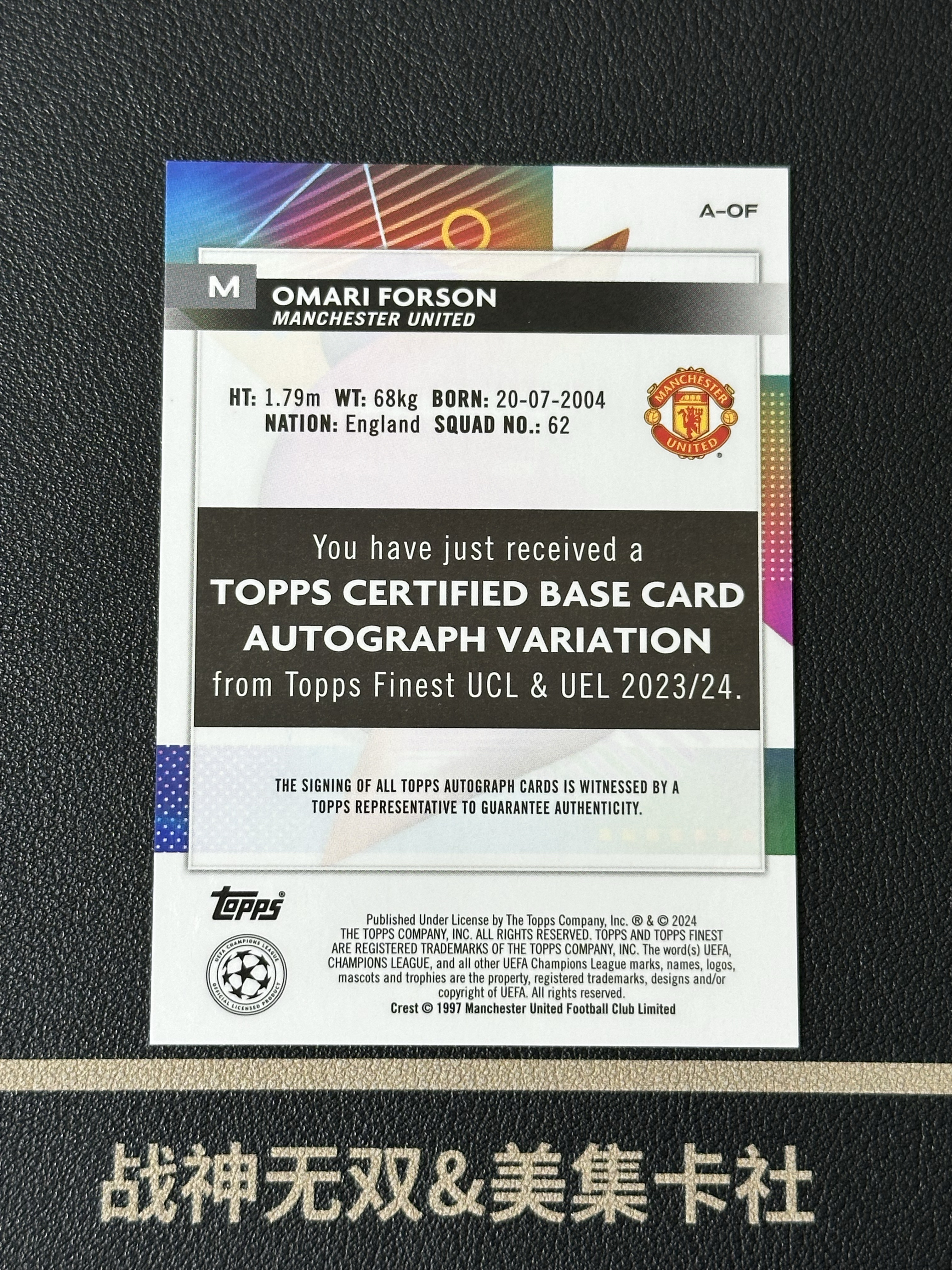 2023-24 Topps Finest Omari Forson RC 福尔森 欧冠tf 新秀 签字 曼联 英格兰 意甲练级 银折 战神无双(#11.17xuan)