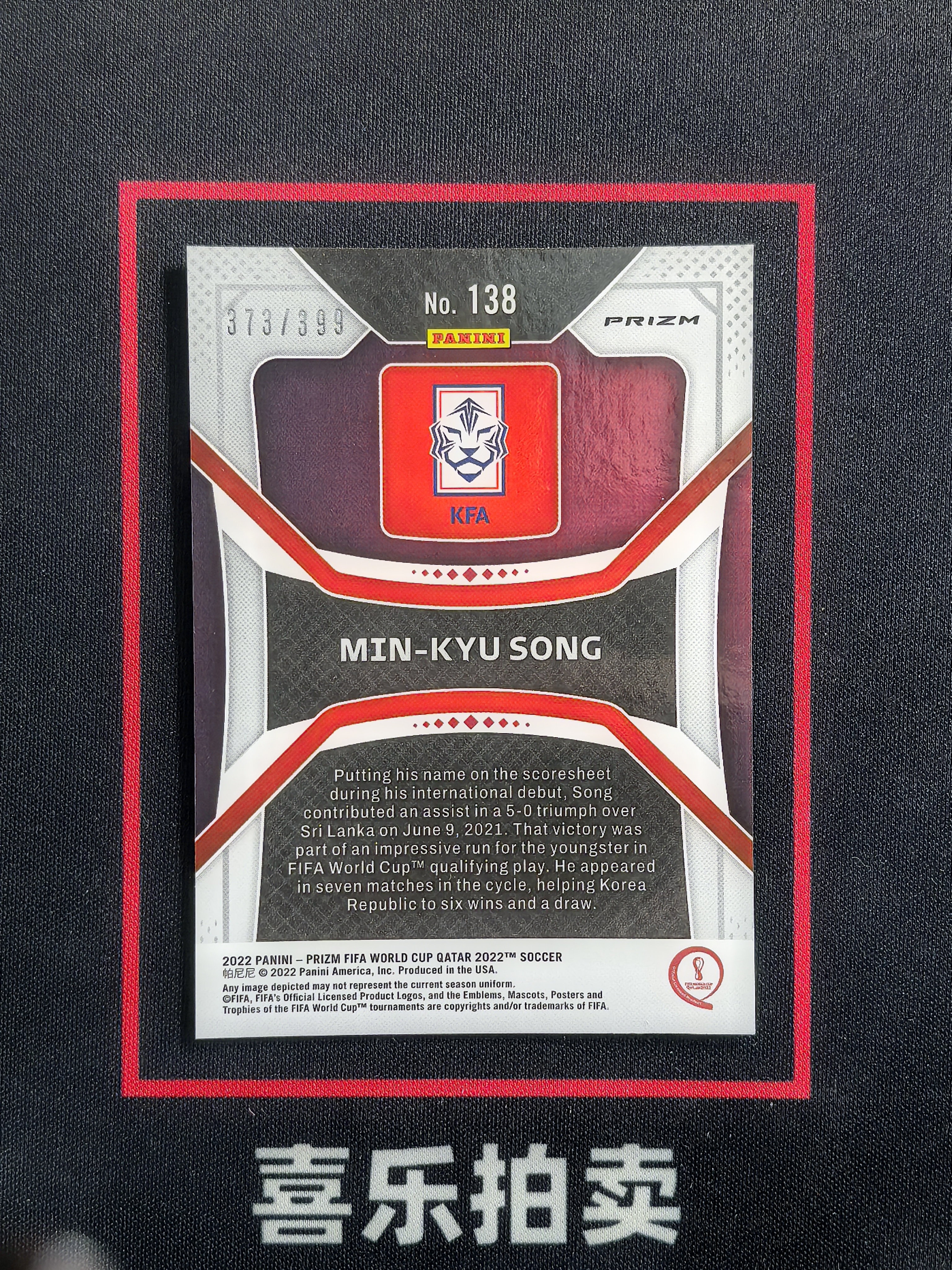 2022 Panini Prizm Min kyu Song 世界杯PZ 新秀RC 全北现代 韩国 宋旼奎 373/399编 红折 折射 潜力无限 卡品如图 sjl