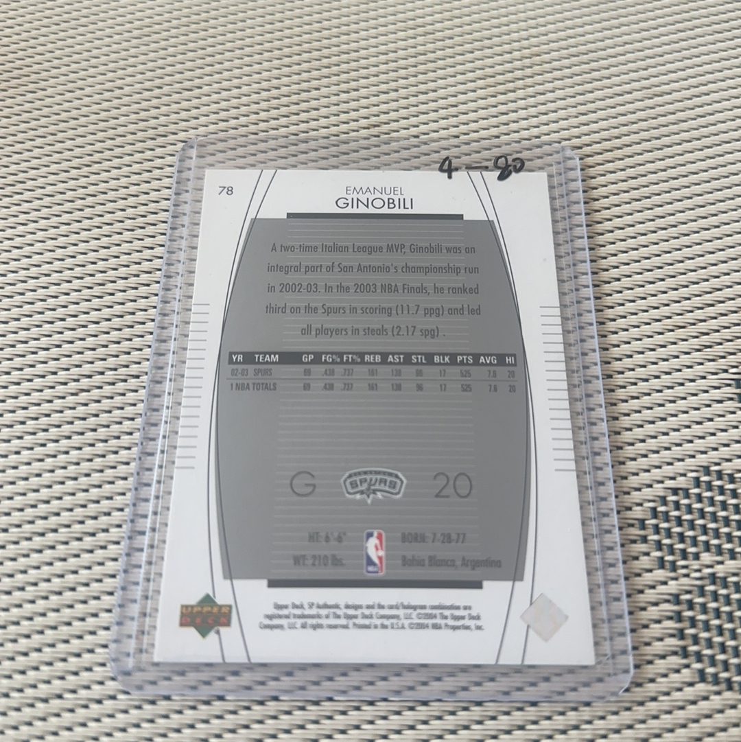 2004 Panini UD Black Manu Ginobili 马努 吉诺比利 马刺队 最佳第六人 GDP UD 老卡 卡品如图 可累计