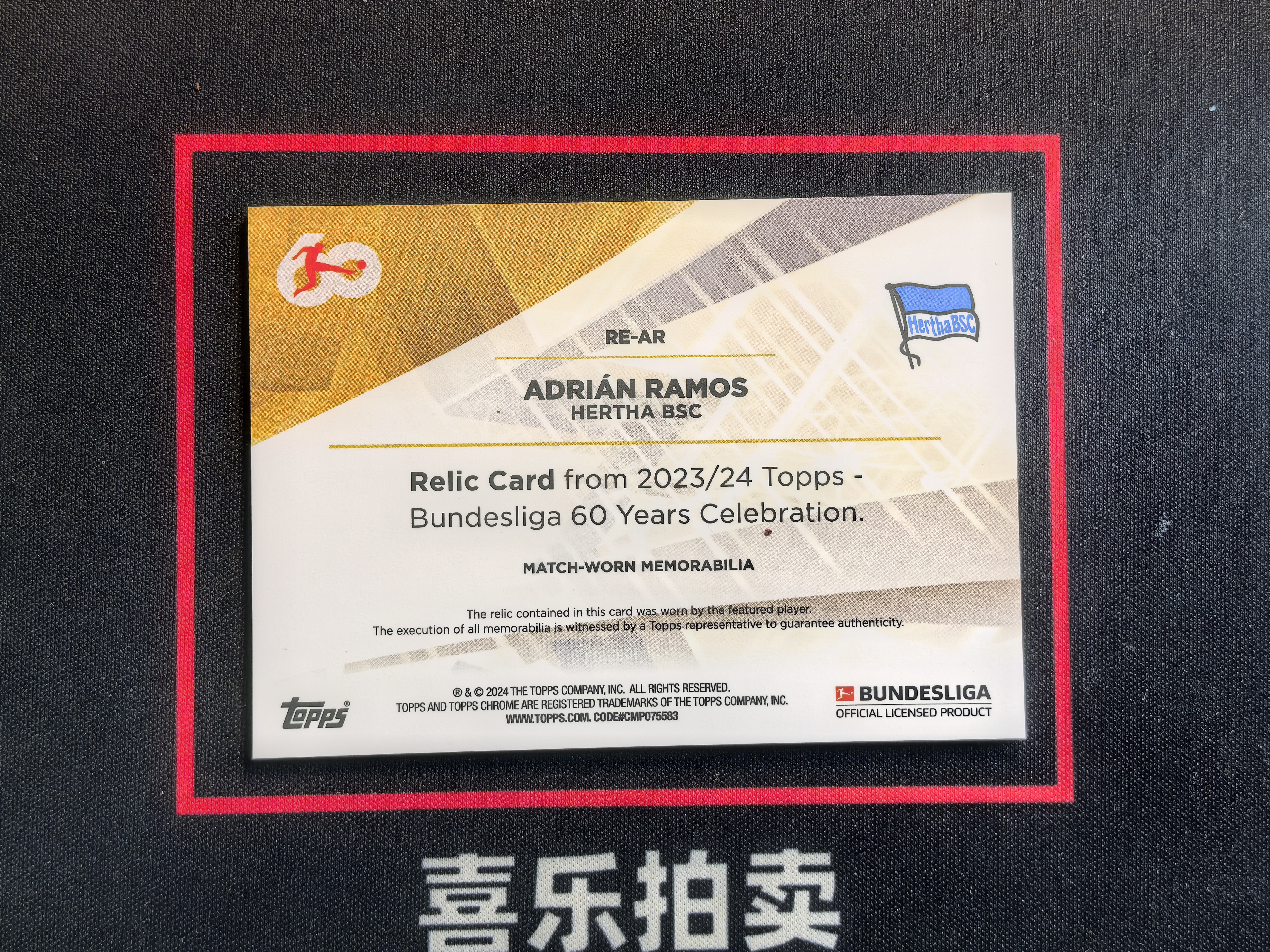 2024 Topps 德甲60周年 Adrian Ramos 柏林赫塔 阿德里安 拉莫斯 德国 小窗球衣 物料切割 白折 折射 收藏必备 卡品如图 sjl