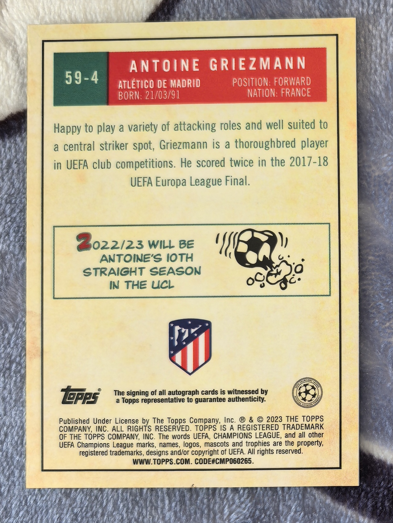 2023 Topps Chrome Antoine Griezmann 格列兹曼 欧冠 马德里竞技 马竞 银折 签字 复古特卡签
