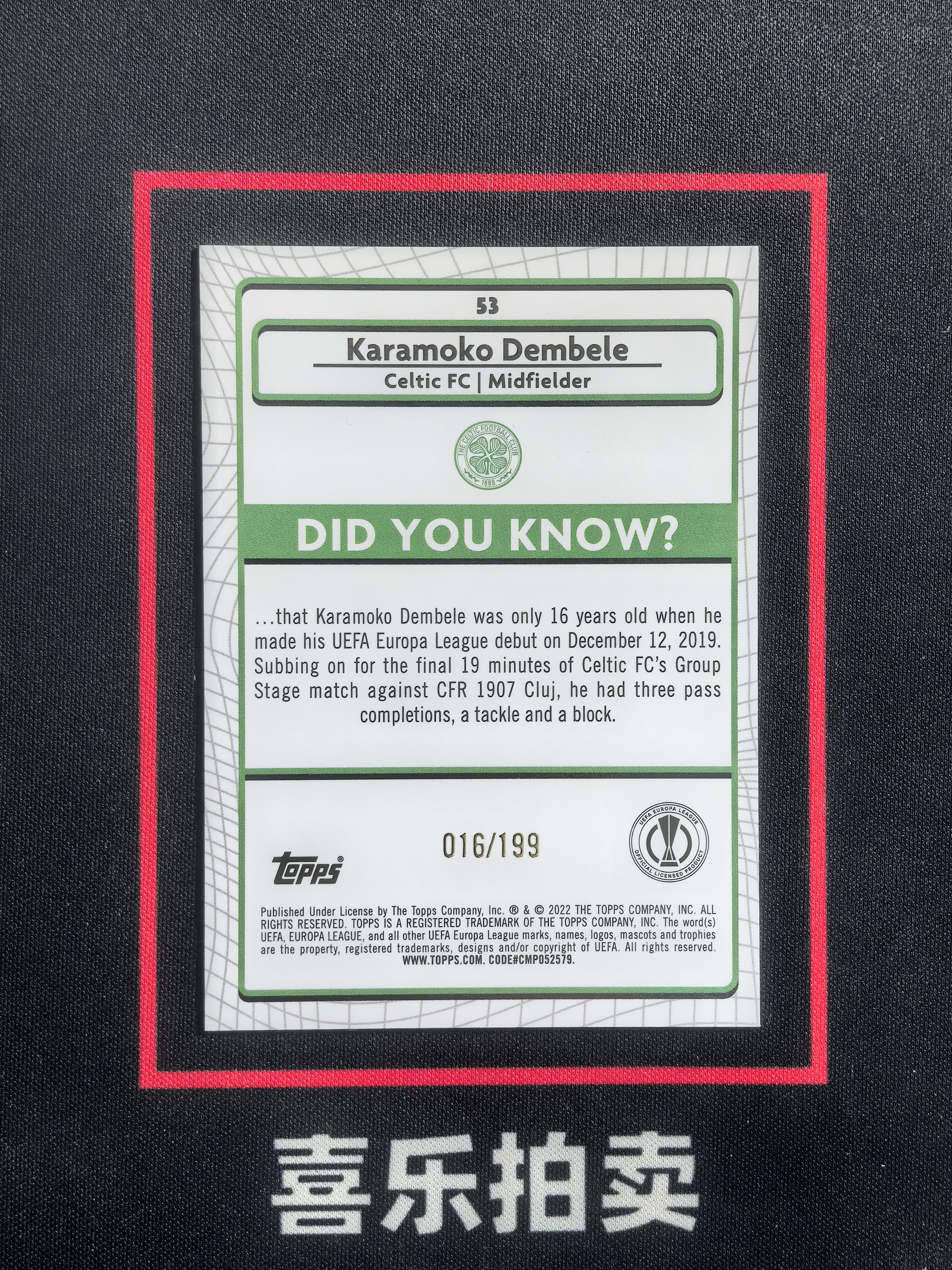 2022 Topps Merlin chrome Karamoko Dembele 欧冠 欧战 梅林 新秀RC 凯尔特人 卡拉莫科 登贝莱 016/199编 青碎点折 折射 潜力无限 卡品如图 sjl