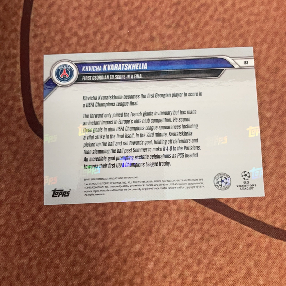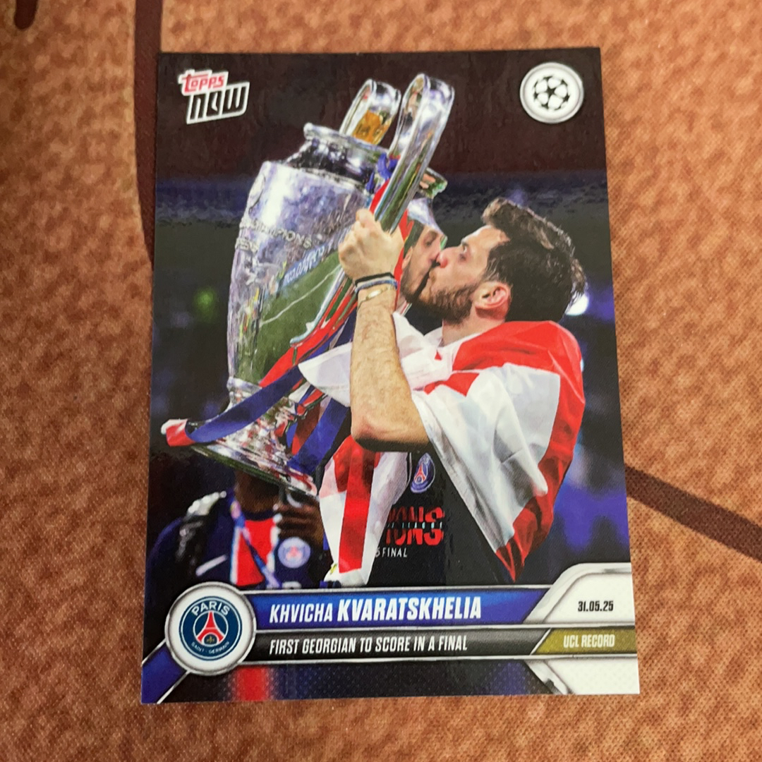 2025 Topps now 克瓦拉茨赫利亚 欧冠 大巴黎 KHVICHA KVARATSKHELIA KK k77 决赛破门捧杯庆祝时刻 base 卡品微瑕 介意勿拍 第2张 (ARS)