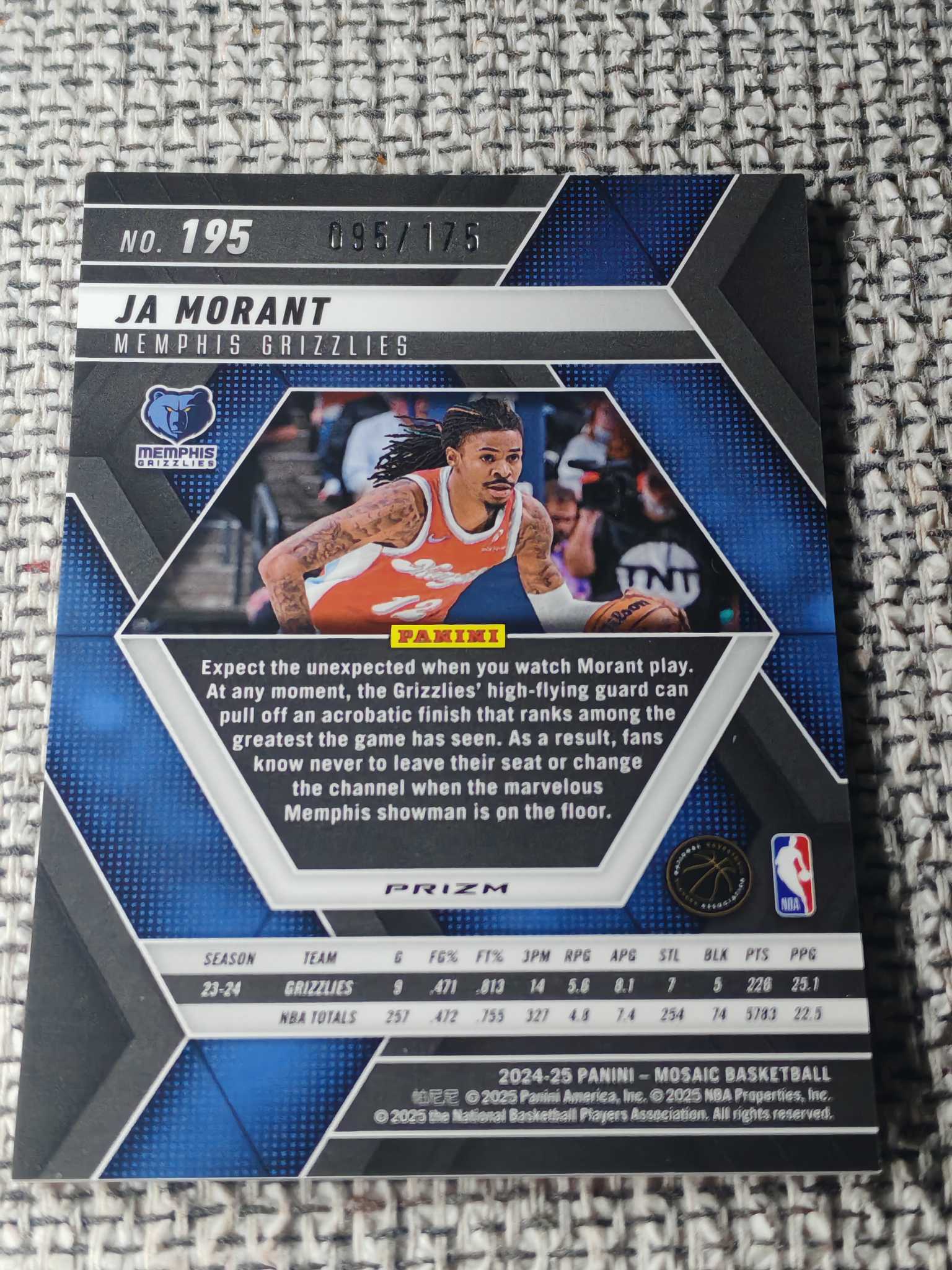 2024-25 Panini Mosaic Ja Morant 贾 莫兰特 粉爆炸 /175编 超低编 YeZi代卖 灰熊