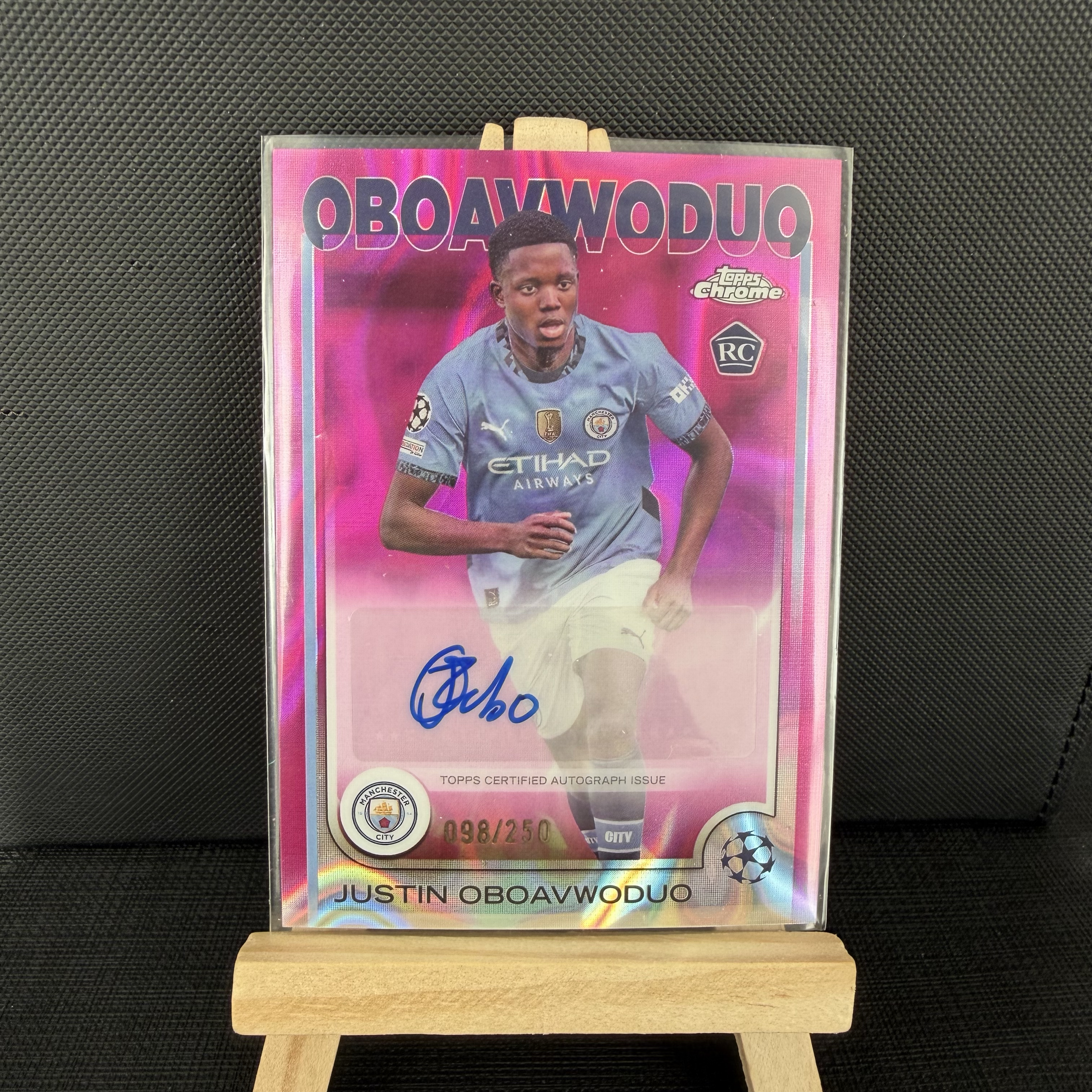 2025 Topps Chrome Justin Oboavwoduo 欧冠 TC 英超 曼城 奥博阿夫沃多 RC新秀 粉熔岩折 折射 250编 签字 默认微瑕 王🫅