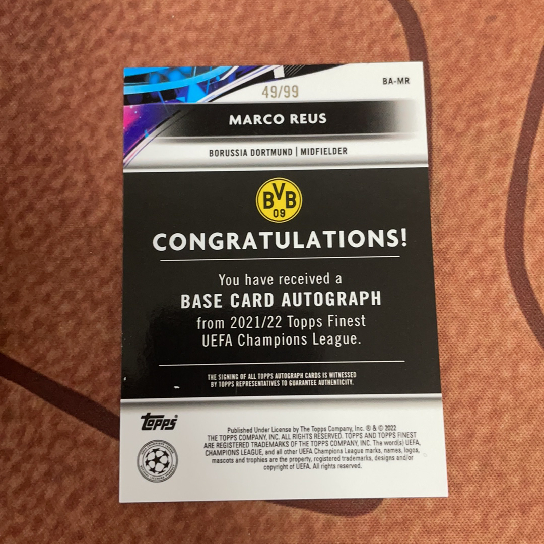 2021-22 Topps Finest 欧冠 欧战 多特蒙德 Marco Reus 罗伊斯 小火箭 绿波纹折 99编 签字 实卡好看 微瑕介意勿拍 收藏必备(ARS)