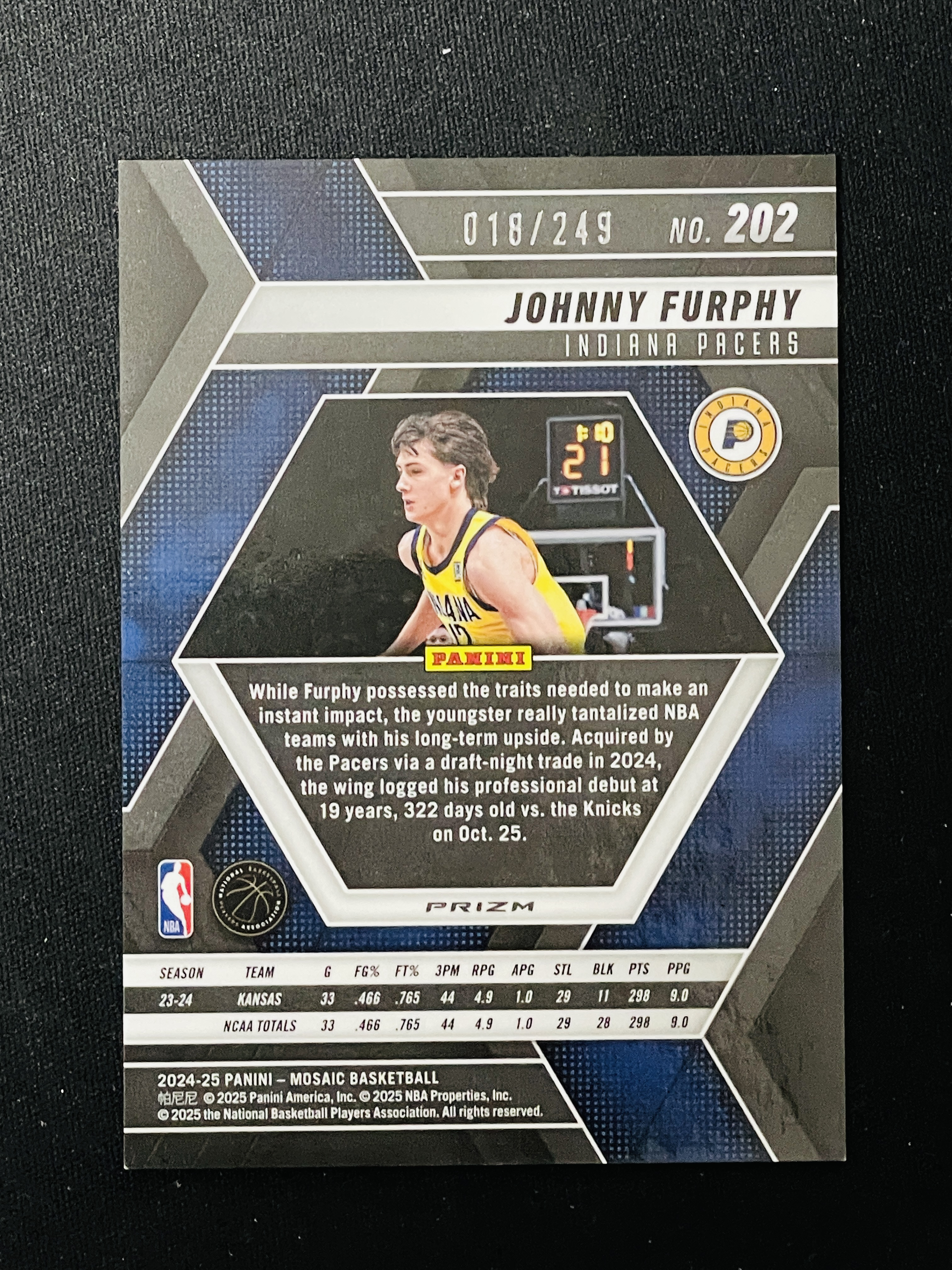 2024-25 Panini Mosaic Johnny Furphy RC 【飞飞代卖】步行者 新秀 约翰尼弗菲 马赛克 橙折 249编 折射 专收凑套必备