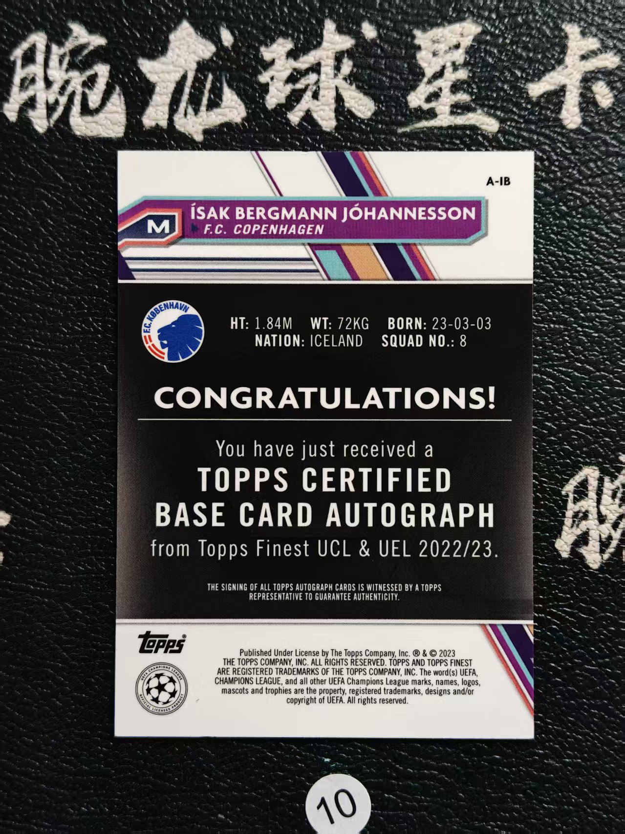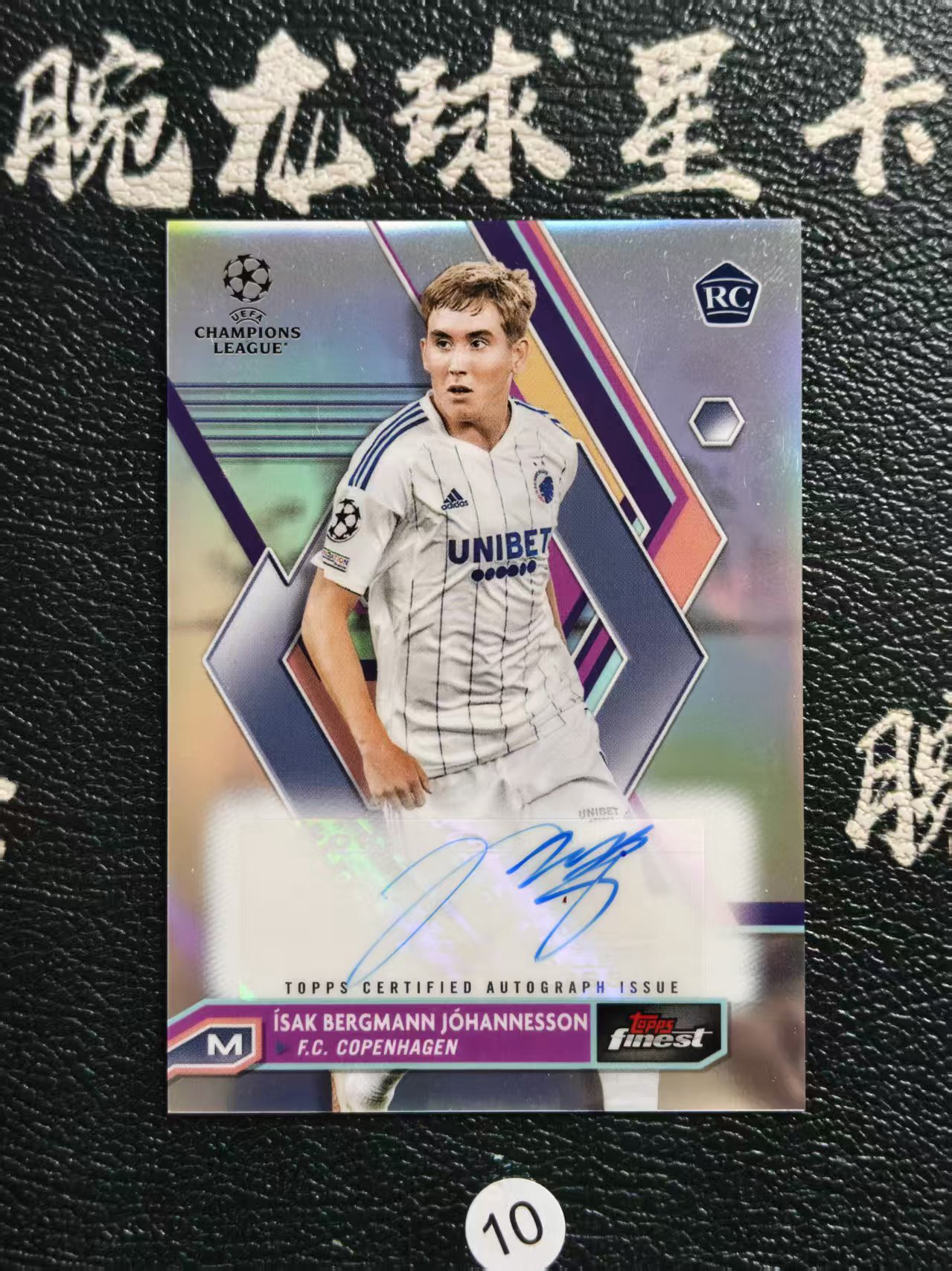 2023 【腕龙拍卖 接代卖】 腕龙一只飞鱼龙AQ8 Topps Finest 欧冠 欧战 约翰内松 冰岛 哥本哈根 RC新秀 银折签 签字 ISAK BERGMANN JOHANNESSON