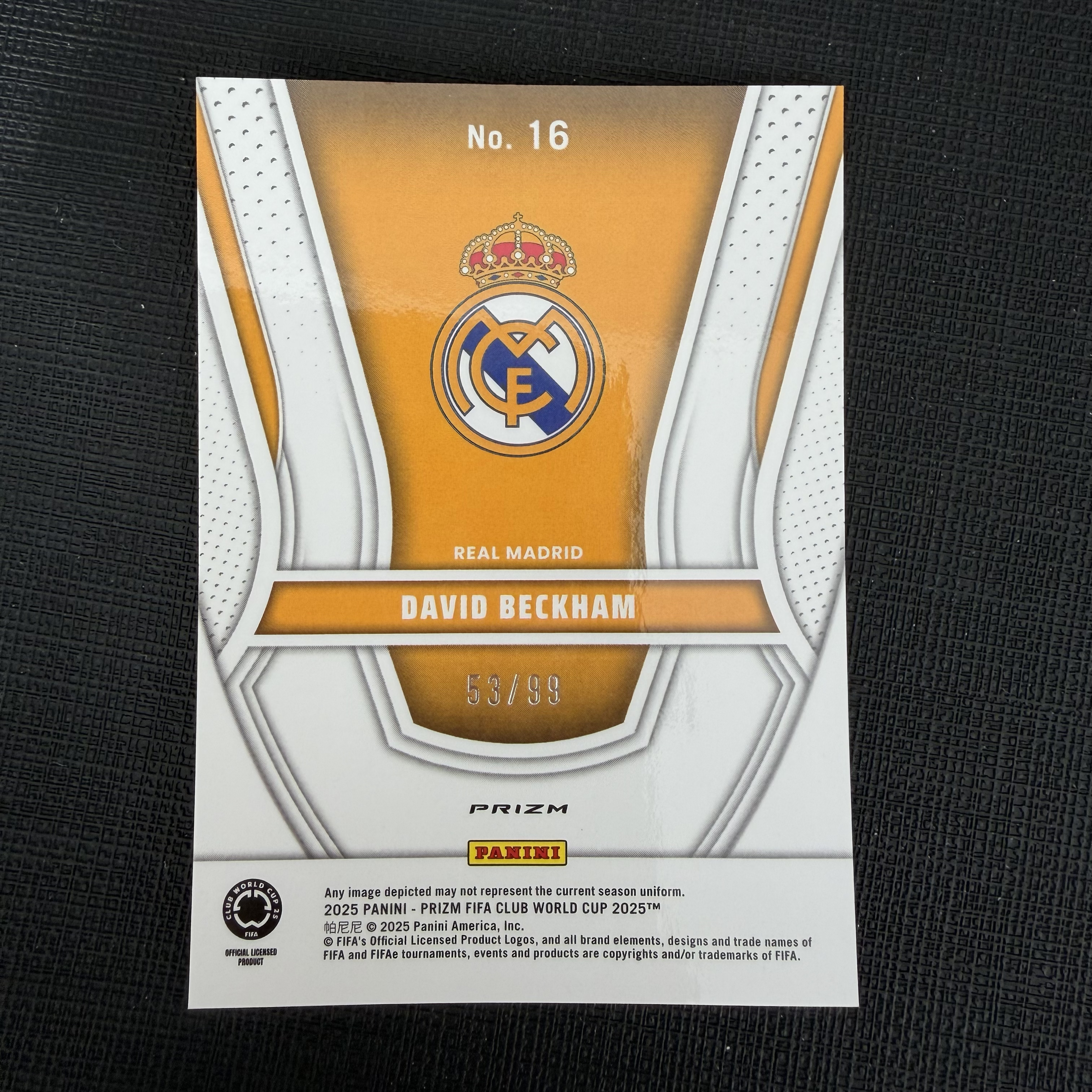 2025 Panini Prizm FIFA Club David Beckham 元年 世俱杯PZ 皇马 大卫 贝克汉姆 英格兰 小贝 万人迷 传奇天赋特卡 /99编 【默认微瑕 不发到付】正义z