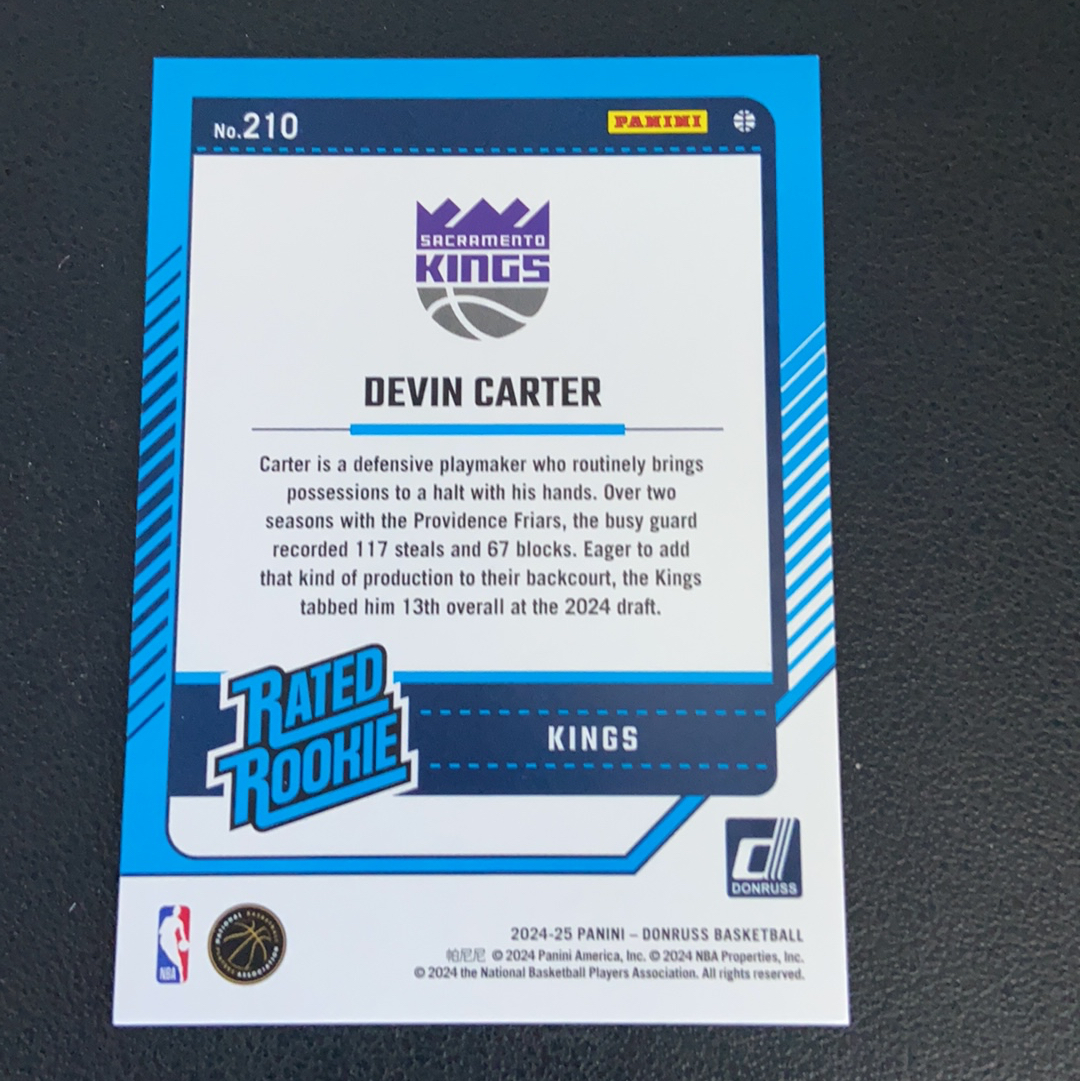 2024-25 Donruss 杜蕾斯 Devin Carter 德文 卡特 国王 RC新秀 149编 银佛光折 收藏必备 瑕疵如图