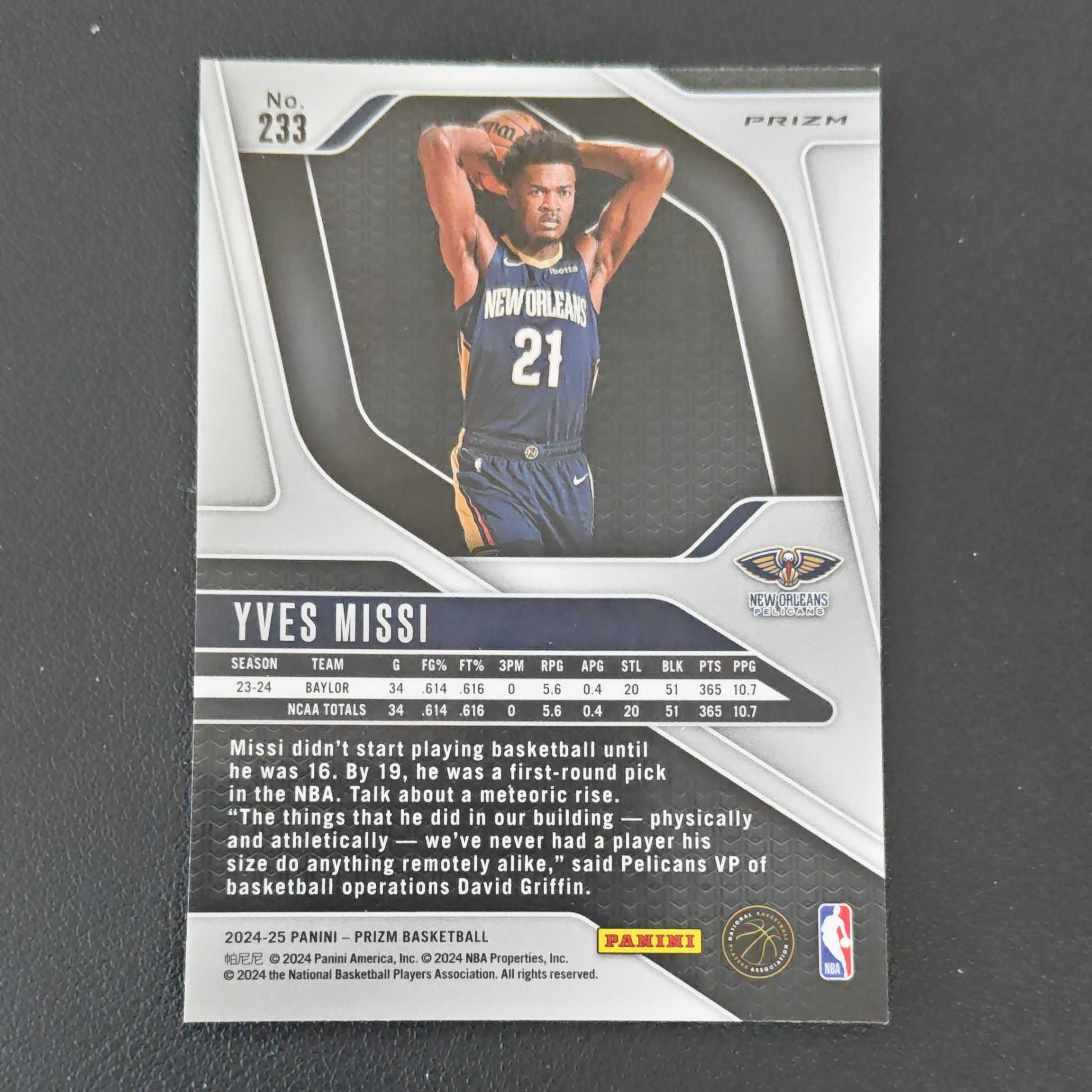 2024-25 Panini Prizm pz系列 Yves Missi 伊夫 米西 鹈鹕 RC 新秀 粉碎冰折 折射 潜力新秀 专收必备 卡品如图