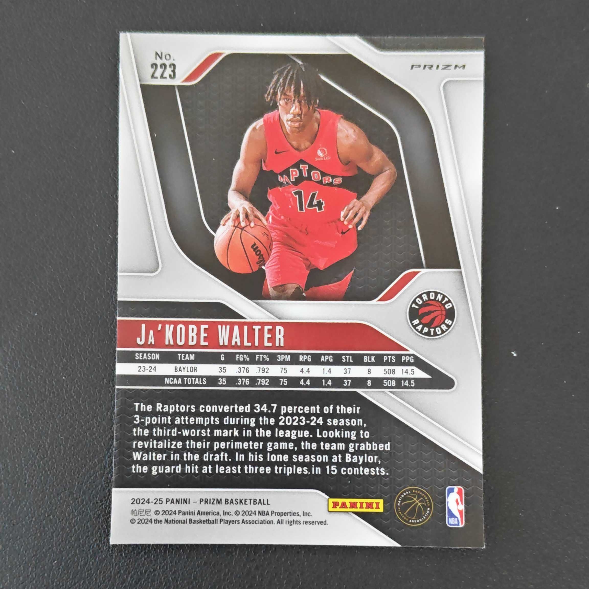 2024-25 Panini Prizm Ja'Kobe Walter RC 贾科比 沃尔特 新秀 pz 粉碎冰 折射 多伦多猛龙 mega独占 好秀 三分绝杀魔术 sun【鼎盛拍卖】