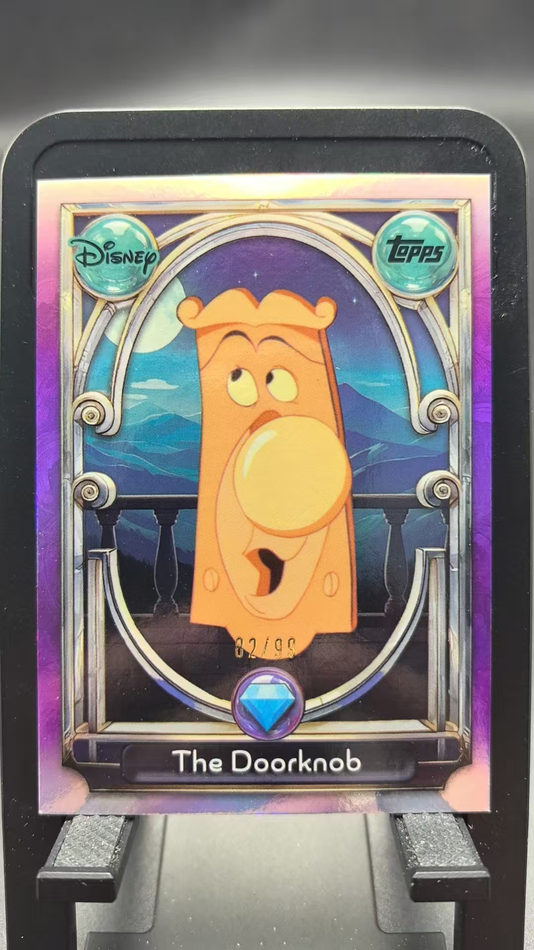 2025 Topps Disney The Doorknob 【EC】元年 迪士尼 美女与野兽 门把先生 82/99编 折射 紫折 钻石 ebay有价 紫尖8