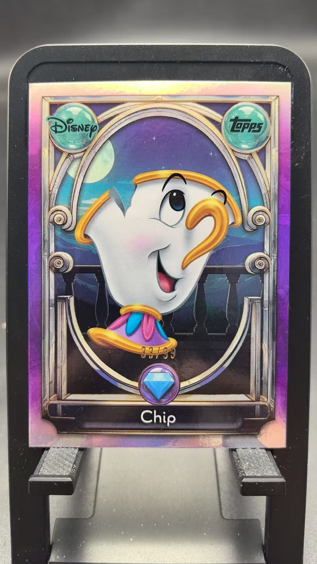 2025 Topps Disney Chip 【EC】元年 迪士尼 美女与野兽 茶杯 阿奇 33/99编 折射 紫折 钻石 ebay有价 紫尖8