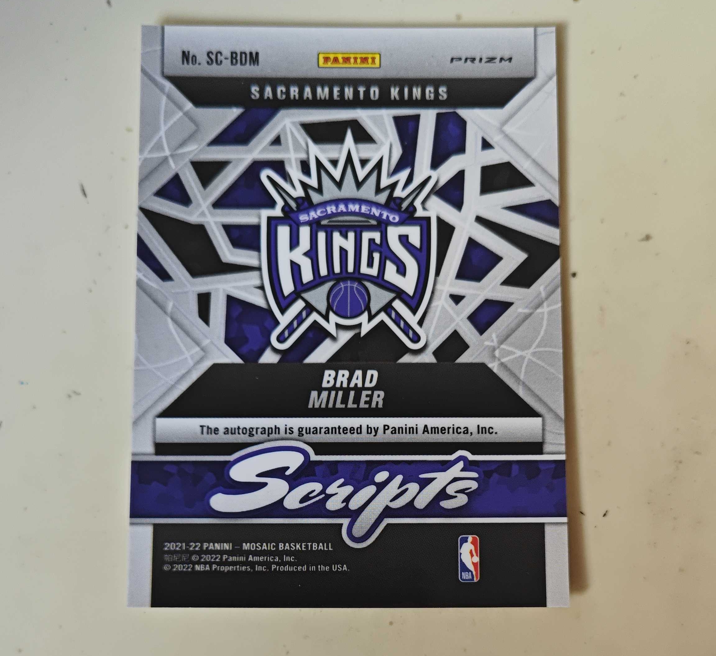 2021-22 Panini Mosaic Brad Miller 布拉德 米勒 马赛克 风车折 折射 Scripts 签字 背号签 国王 传奇中锋 专收必备