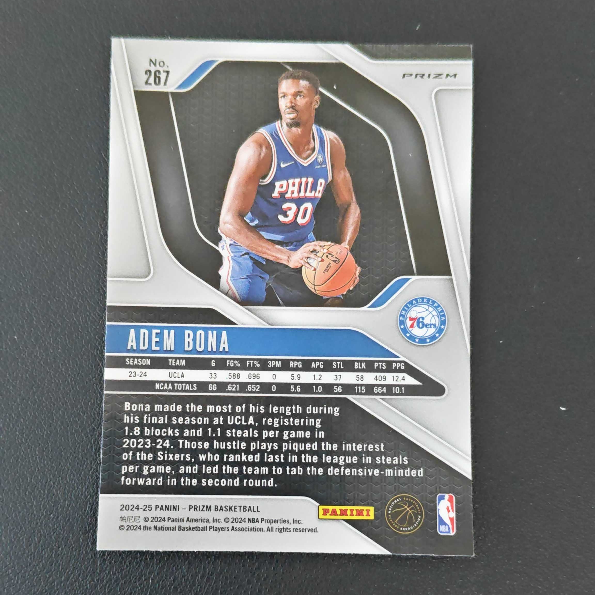 2024-25 Panini Prizm Adem Bona RC 【鼎盛拍卖】阿德姆 博纳  PZ 新秀 粉碎冰折 折射 卡品如图