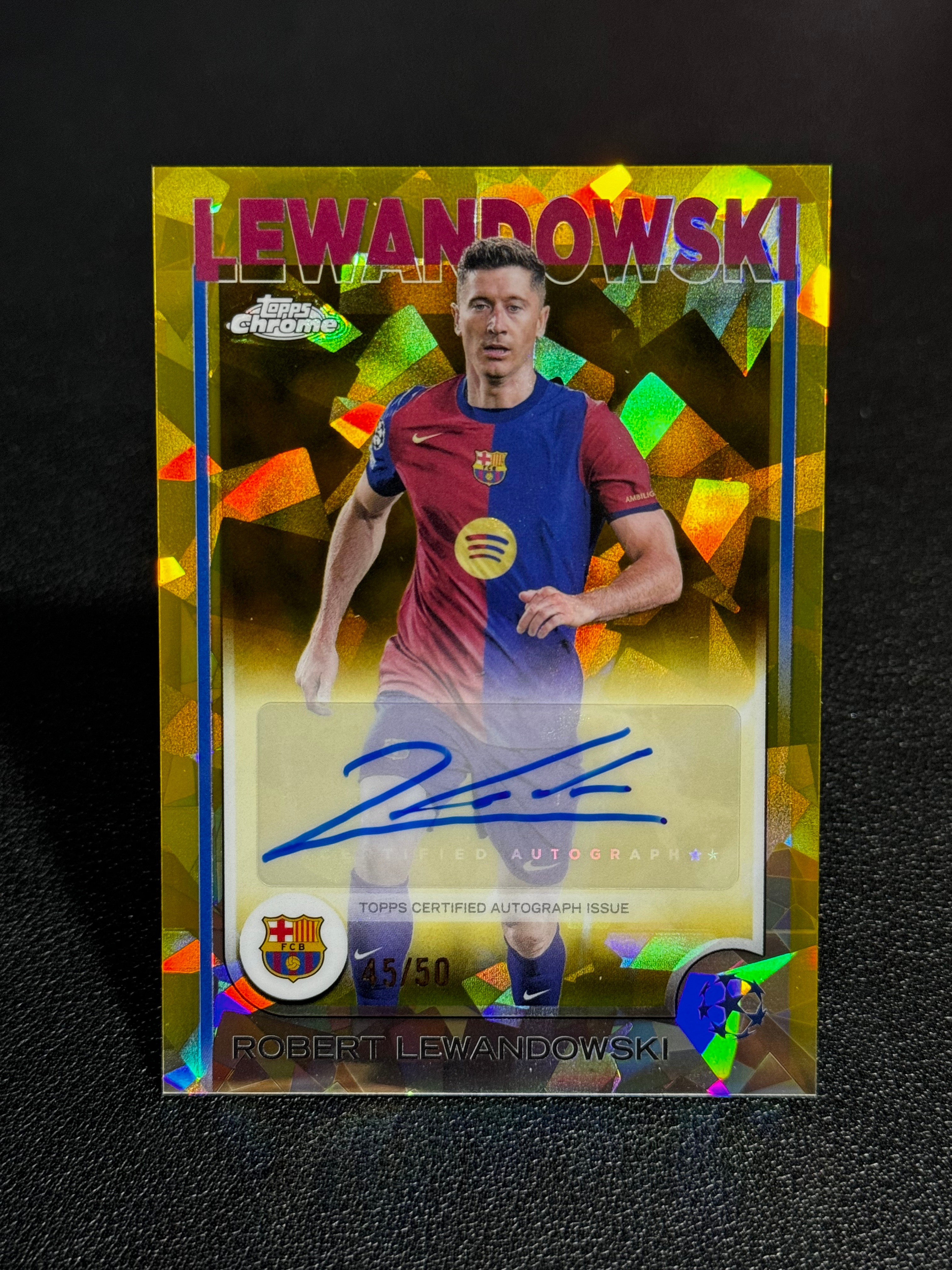 2025 Topps UEFA Champions League Robert Lewandowksi 欧冠 TC 蓝宝石 金折 50编 签字 Auto 碎冰折 巴萨 波兰 莱万 收藏 必备 LWWF